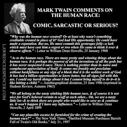 Are the comments made about the human race more than 100 years ago by Mark Twain intended to be humorous, sarcastic or serious?