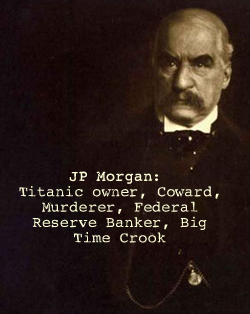 1. J.P. Morgan owned White Star Line ships. J.P. Morgan was also the main conspirator behind the creation of the Federal Reserve Banking System. He was supposed to be on the Titanic but canceled at the last moment.