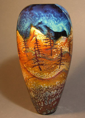 Satava hand-blow glass vases are each entirely original works of glass art. One can only really appreciate the stunning colors and unique design by seeing them in person.