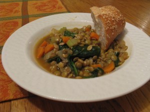 Add vegetable broth and lentils. Cover and reduce heat to simmer.