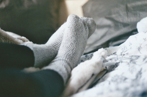 If your feet are dry and flaky, coat them in Vaseline. Put on a clean pair of cotton socks, and sleep with the socks on. This is a cheap way to get your feet soft. (I like wearing socks to bed. I always did, I guess, because I grew up in Chicago, and it was freezing cold. I do this tip a lot.)