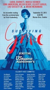 Marilu will be lending her considerable talent to the incredible organization USAgainstAlzheimer’s as they present Trish Vradenberg’s mother/daughter play SURVIVING GRACE on Wednesday September 25th at the Stephen J. Ross Theatre in Burbank and on Friday the 27th at the Shiley Theatre in San Diego.