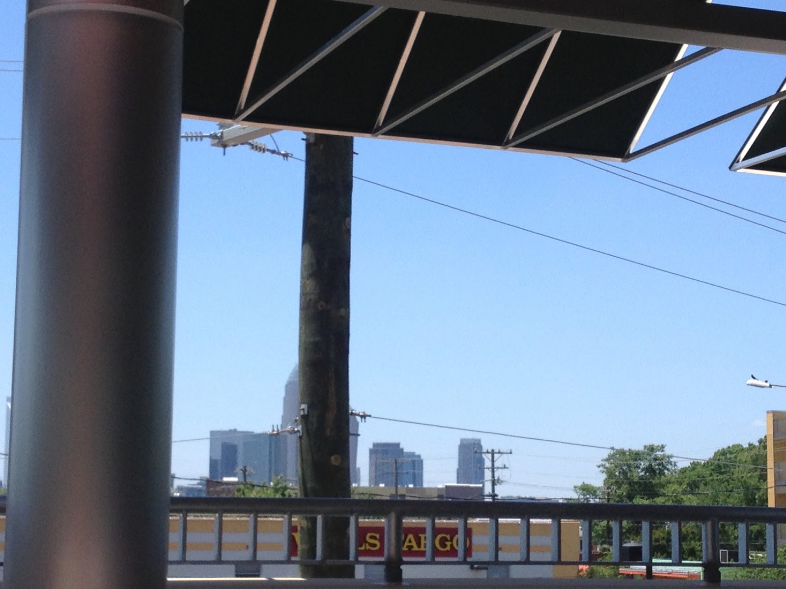 The outdoor tables are wide and great for your laptop, iPad or even your lunch. I guess some people will come up there to eat, drink and look at the skyline. Charlotte has a nice sky line and when it isn't humid and hazy, it is pretty to gaze upon. (That was purple prose. Sorry.)