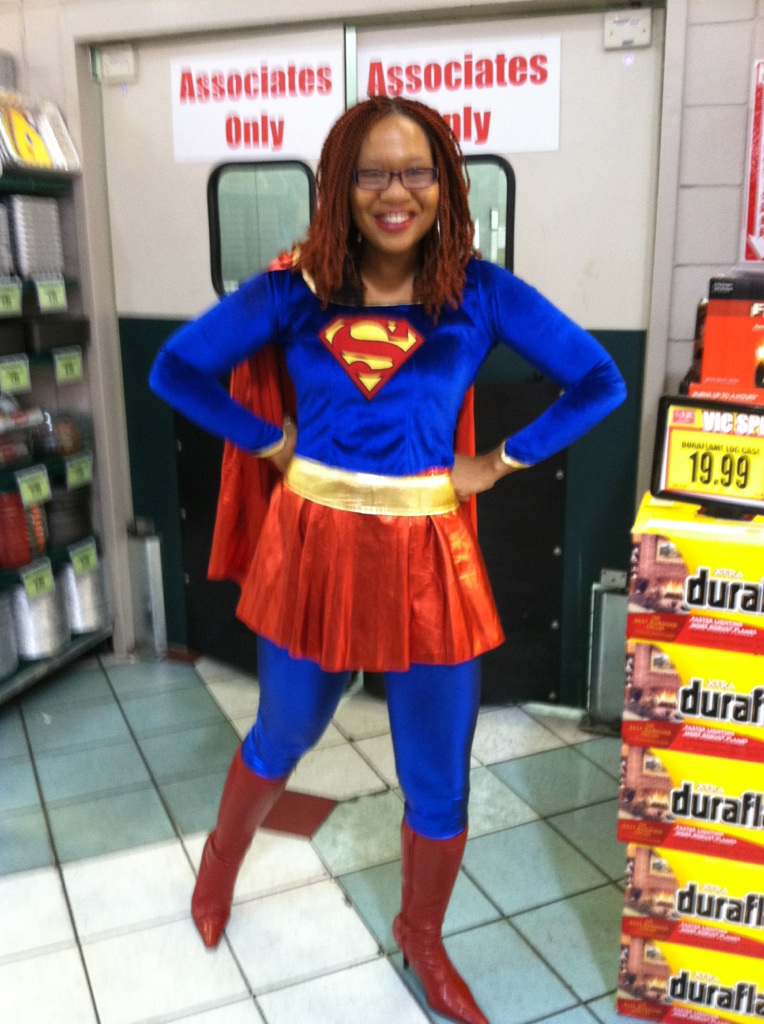 Starbucks. Starbucks with roof top seating. It was everything that I thought it would be. And one thing I didn't count on -- it was hot up there. And sitting directly in the glow of the sun didn't help. I realized today, even though I was Supergirl for Halloween, I'm a mere mortal who should've had an iced coffee rather than that grande HOT dark roast.