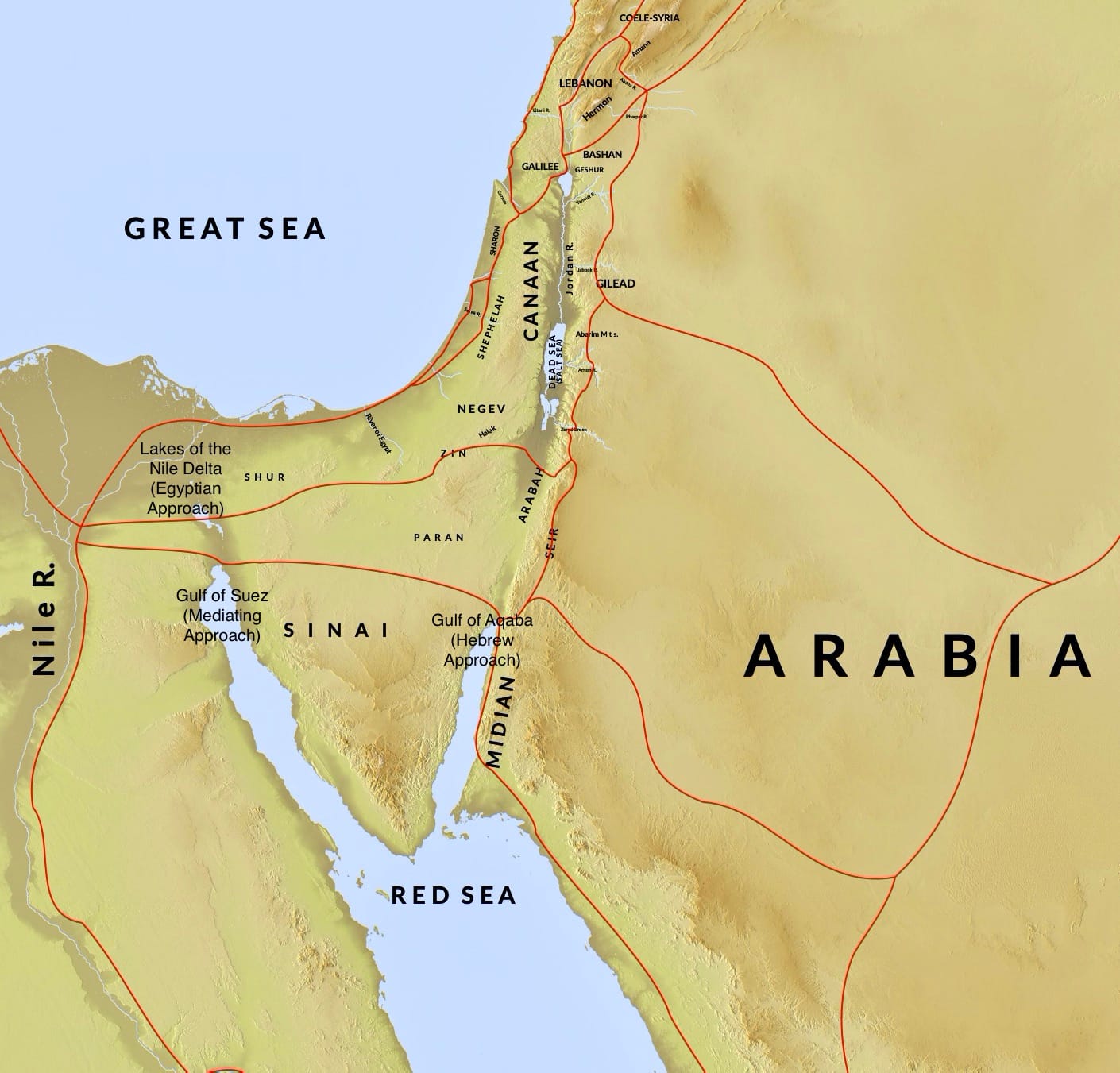 Option 2: The Hebrew Approach, instead, asserts that the Bible itself points both to a sea crossing further away from Egypt at a location that demands a miracle of unparalleled proportions. After leaving Egypt in haste and journeying across the Sinai Peninsula, Yahweh parted the waters at the Gulf of Aqaba, and then Israel journeyed on to a Mt. Sinai located not in the Sinai Peninsula but in Midian in the northeastern part of the Arabian Peninsula.