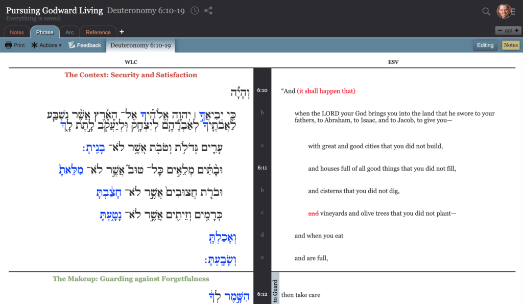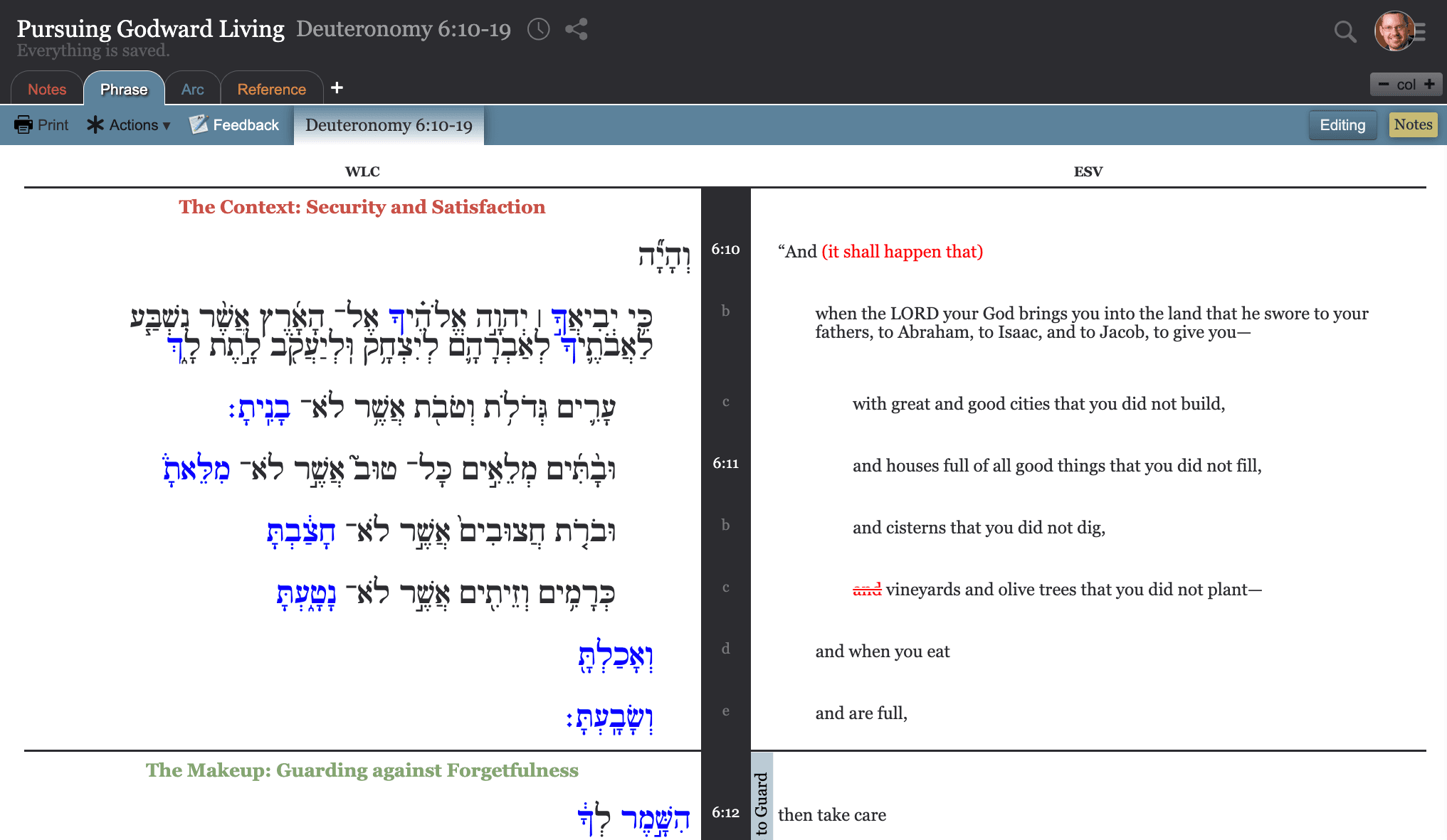I recently gave a 50 minute guided discussion on this topic at Biblearc.com‘s Facebook Live page. For those wanting to learn how to create a text hierarchy in English or Hebrew, I encourage you to check out the video here. For PDFs of my Text Hierarchy and exegetical outline of Deuteronomy 6:10–19, follow this link.