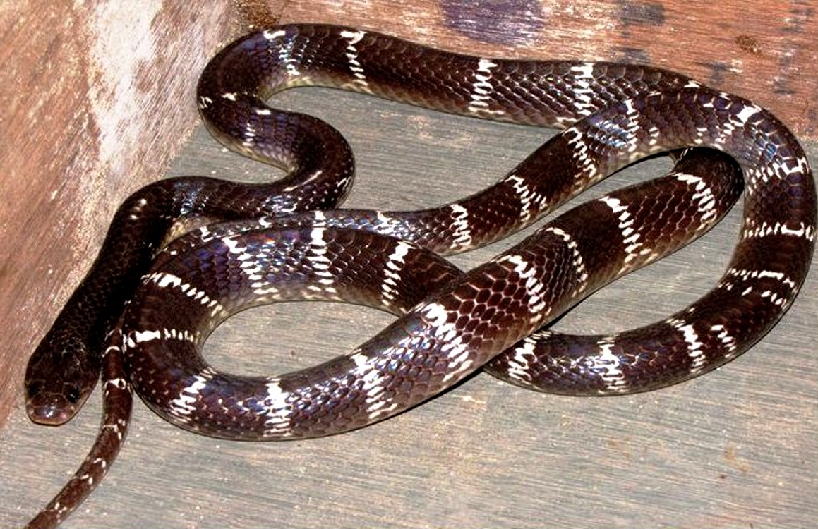 Adult specimen of the common Indian krait Bungarus caeruleus (© Jayendra Chiplunkar/Wikipedia –