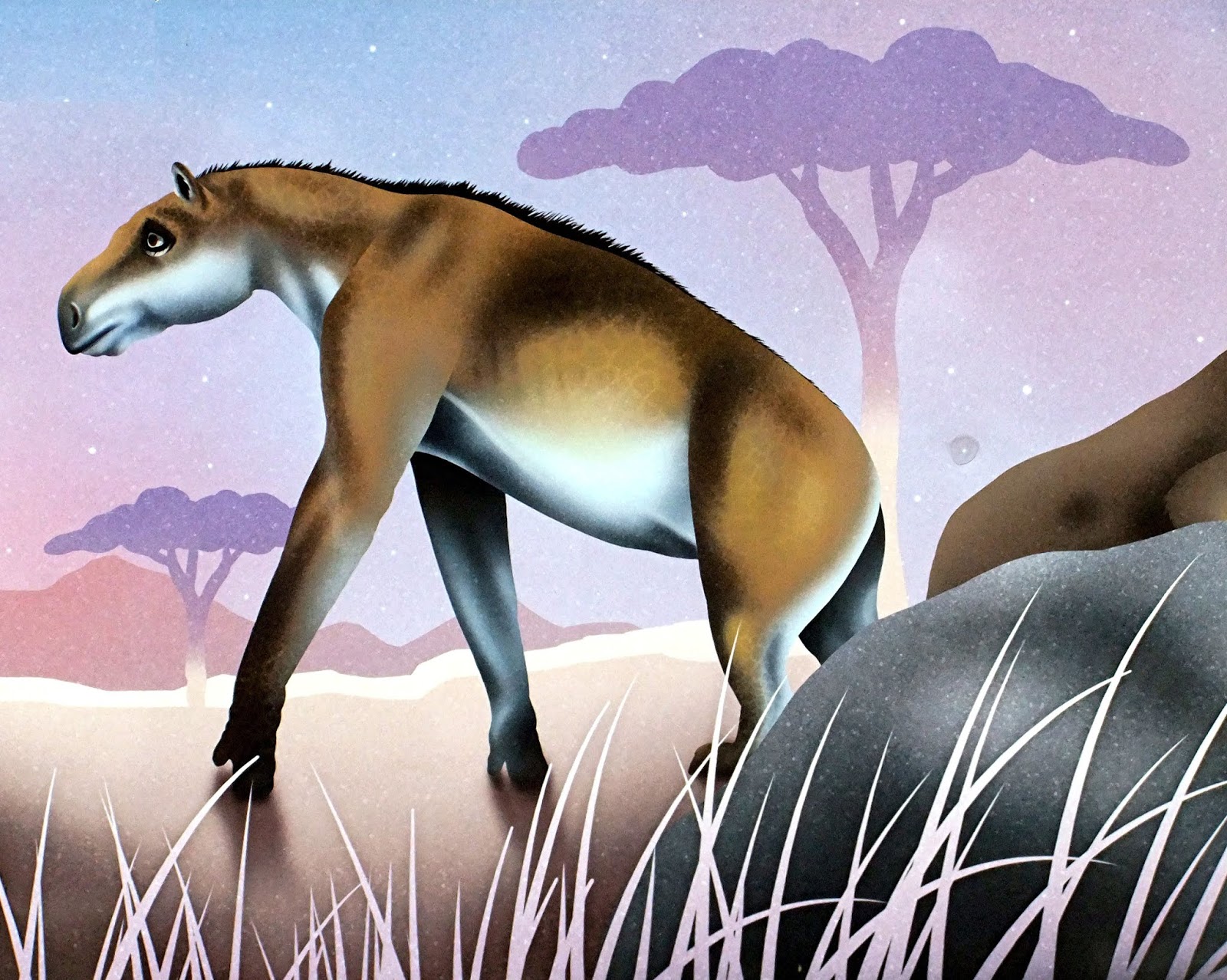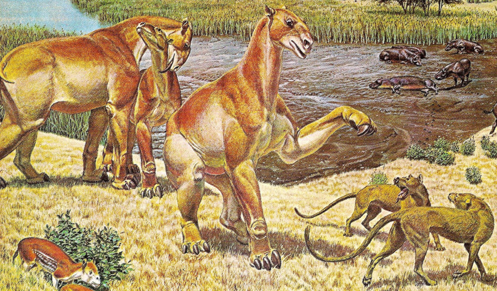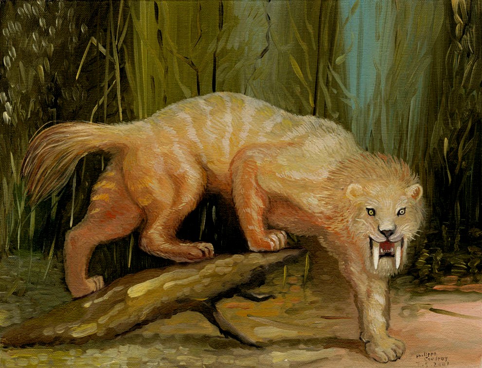 , a species of dog-like borophagine, depicted by Roger Witter in his Turtle Cove mural (public domain, according to Wikipedia – click