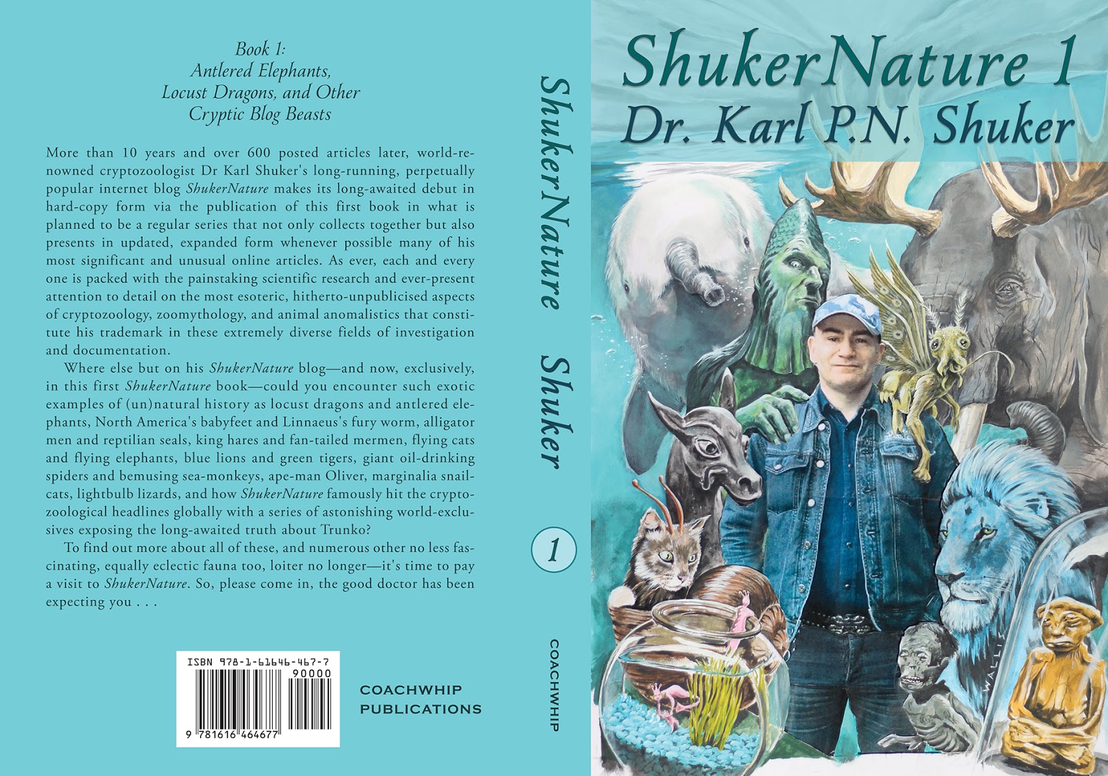 Full cover wrap, including back-cover blurb (click picture to expand for reading purposes), from ShukerNatureBook 1 (© Dr Karl Shuker/Coachwhip Publications)