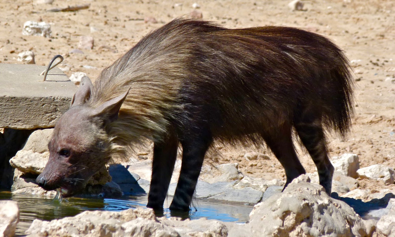 Brown hyaena in the Gemsbok National Park, South Africa (© Bernard Dupont/Wikipedia –