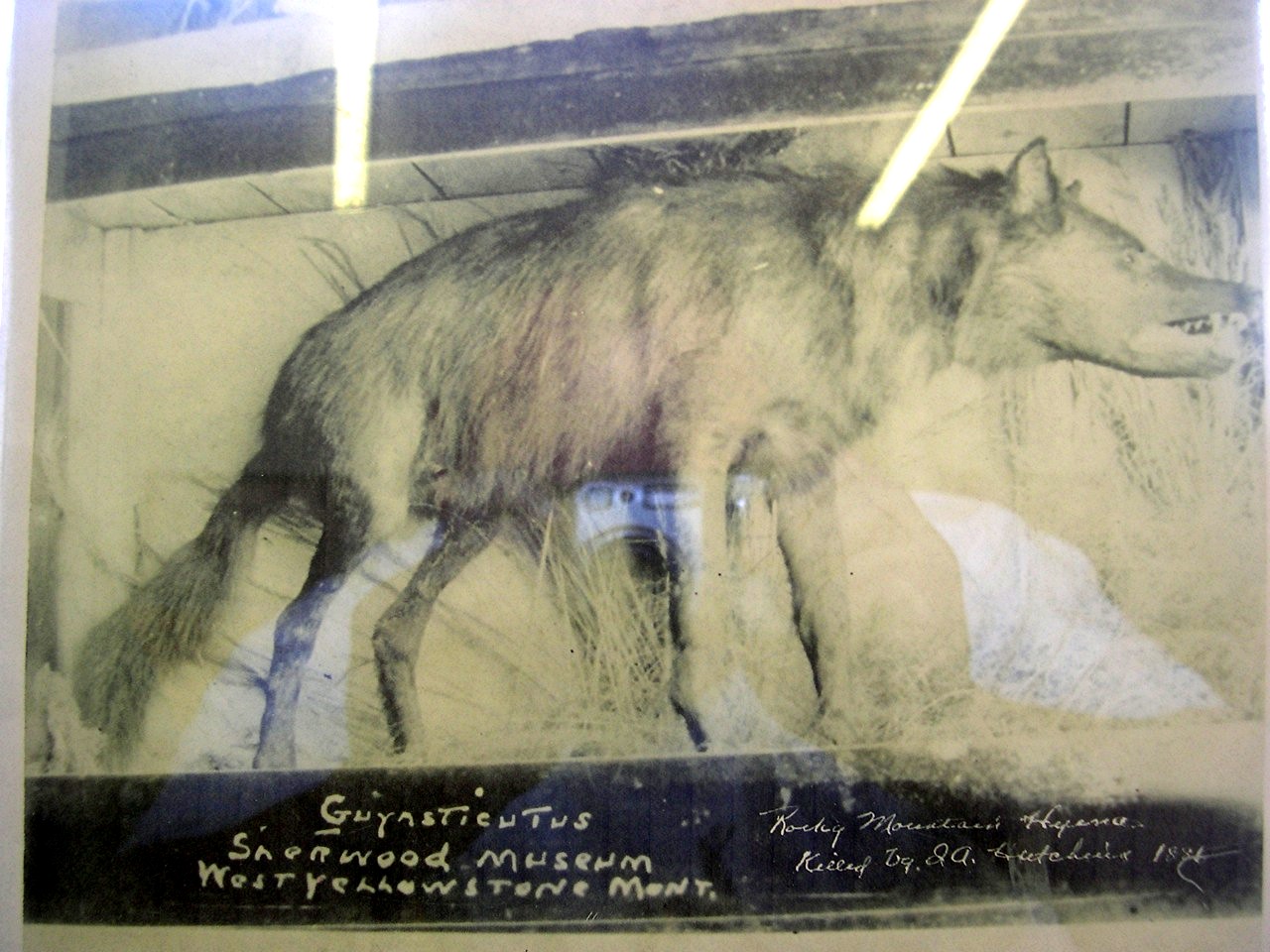 [The] specimen I saw was no larger than an ordinary wolf…As I viewed “The Beast,” the whole time I was thinking in my mind “wolf.” Believe you me, I was looking for any hyena-like characteristics. No-one would love to find something “prehistoric” more than me, but, you have to keep your head on straight and be realistic, otherwise you’ll just end up fooling yourself. You brought up a very valid point that I had not considered before, the cross-breed consideration. One thing that always bothered me about the account of this beast, was that as recalled in the book: “Trails To Nature’s Mysteries,” this animal that was shot and killed, was described as being friendly toward the dogs around the ranch in Montana. Now, why would an animal described as “carrying-off-dogs” be friendly and non-aggressive w/dogs, unless it was actually part dog itself?