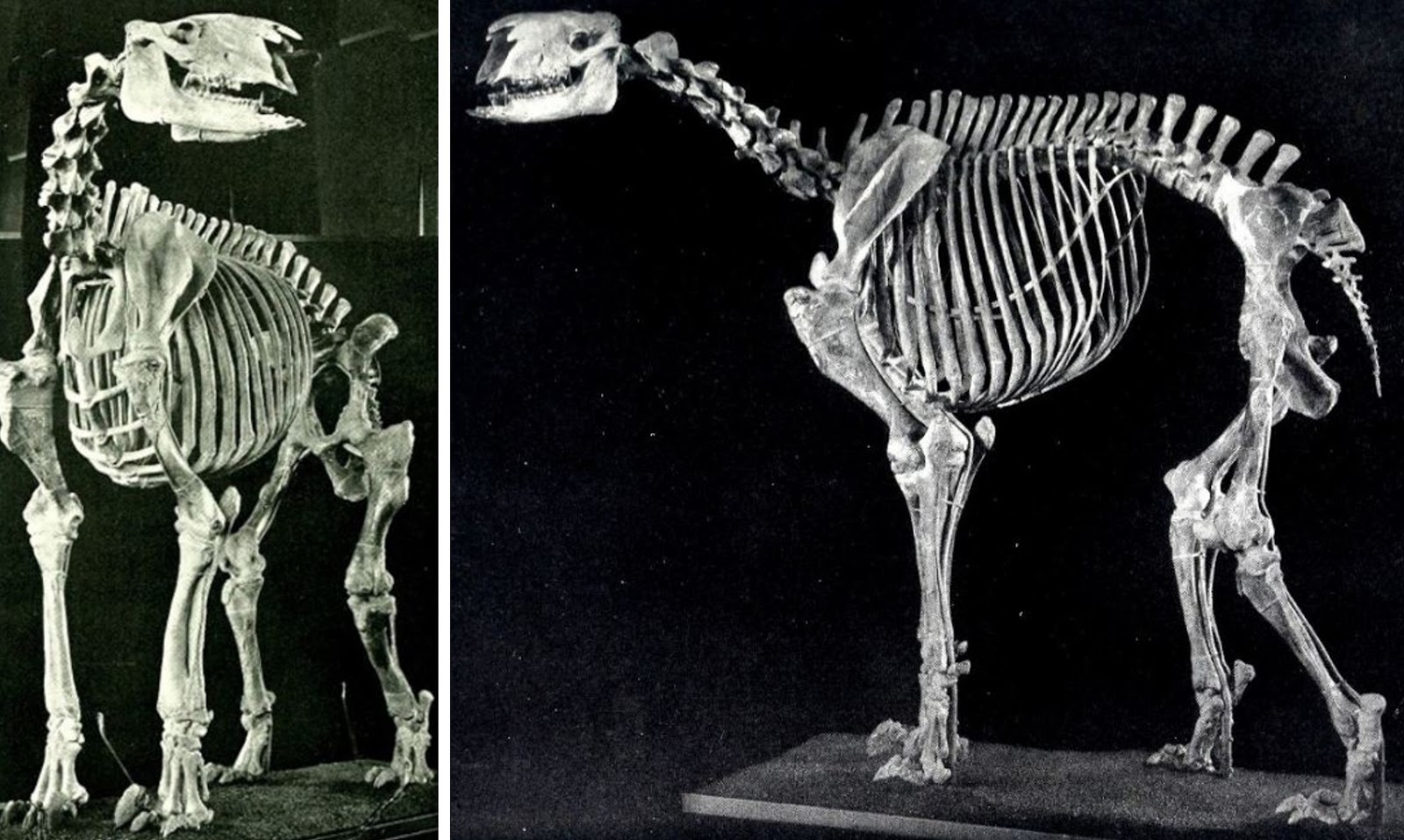 Three very dramatic identities that have been proposed [by various cryptozoological investigators] involve the prospect of prehistoric survival. One of these identities is an undiscovered, modern-day borophagine – a superficially hyaena-like subfamily of canids represented by fossils in North America’s Oligocene to Pliocene epochs (34-2.5 million years ago). However, their hypershortened faces differ markedly from the long-snouted profile of the stuffed creature. The second suggestion is a surviving Chasmaporthetes ossifragus, America’s formidable hunting hyaena, which officially became extinct around 10,000 years ago [since revised to around 0.78 million years ago]. And the third is a relict amphicyonid, an identity that has also been applied to another mystery mammalian carnivore reported from North America, the waheela [click here to read more about this cryptid on ShukerNature].