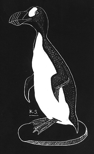 My scraperboard illustration of a great auk (© Dr Karl Shuker)