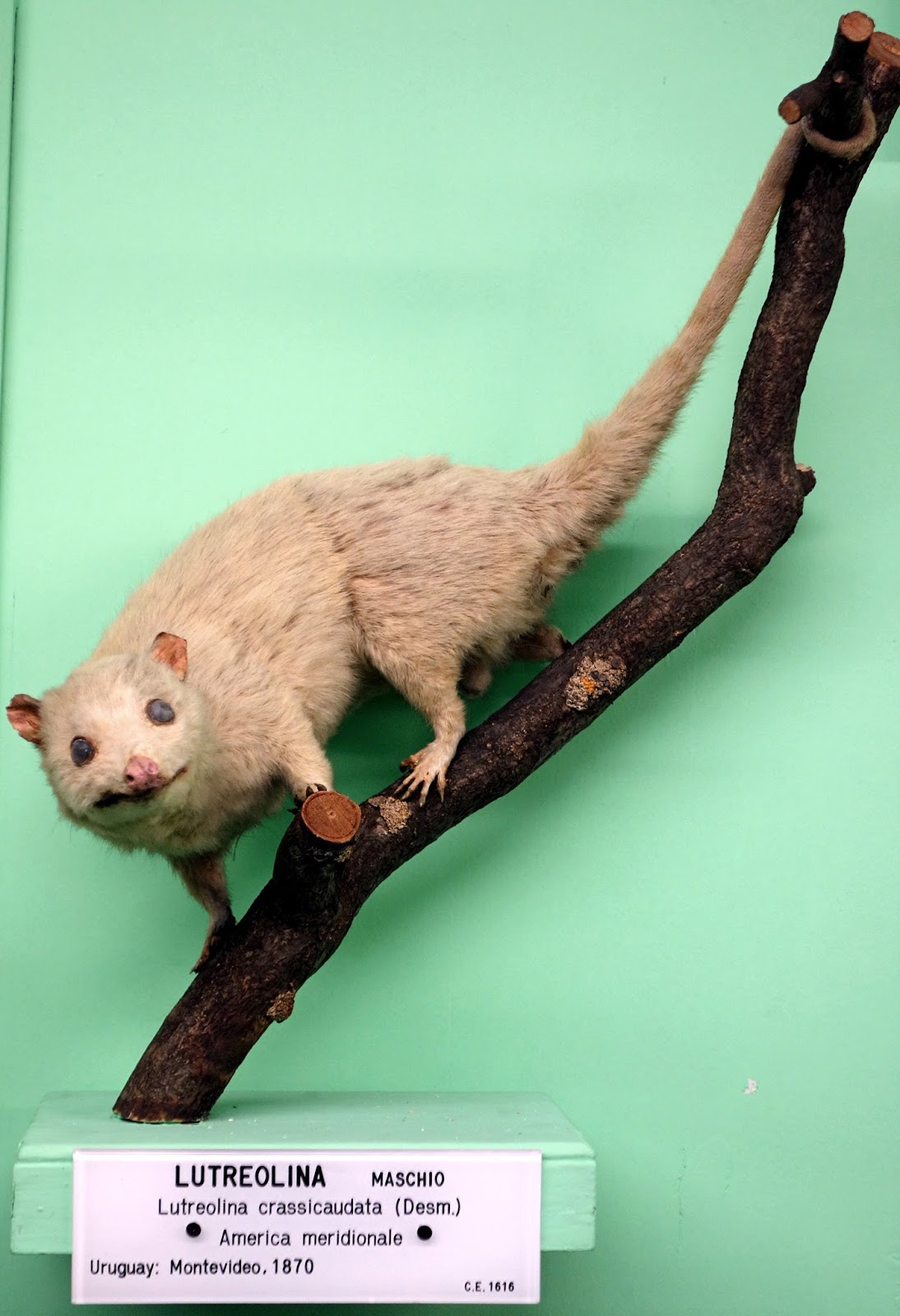 Taxiderm specimen of a thick-tailed opossum at Italy's Museo Civico di Storia Naturale di Genova (public domain)So what could Woodhouse's pouched skunk have been? I have even considered briefly the possibility that the adult female animal found dead was a genuine skunk that was heavily pregnant, and that the shock of the storm had caused one of her babies to be born prematurely, with Woodhouse mistaking this mother skunk's vagina and uterus for a pouch! However, this all seems highly improbable, especially as Woodhouse was someone with considerable experience from a very early age at caring for and handling animals.