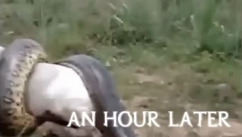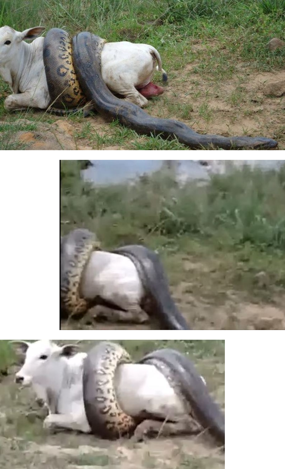 (Having said that, and basing the following comment upon those specific examples viewed by me: what was contained in allof those videos introduced by one of the fake photos depicting the anaconda coiled around an animal was genuine, graphic video footage of animals being attacked and killed by constricting snakes, and sometimes by other animals too, each such video often comprising a compilation of several different, shorter video segments linked together, one after another, to yield a total video often lasting 10 minutes or more. In my opinion, this is nothing but gratuitous, sickening 'video nasty' sensationalism, and I therefore shall not be providing links to any of those videos here.)