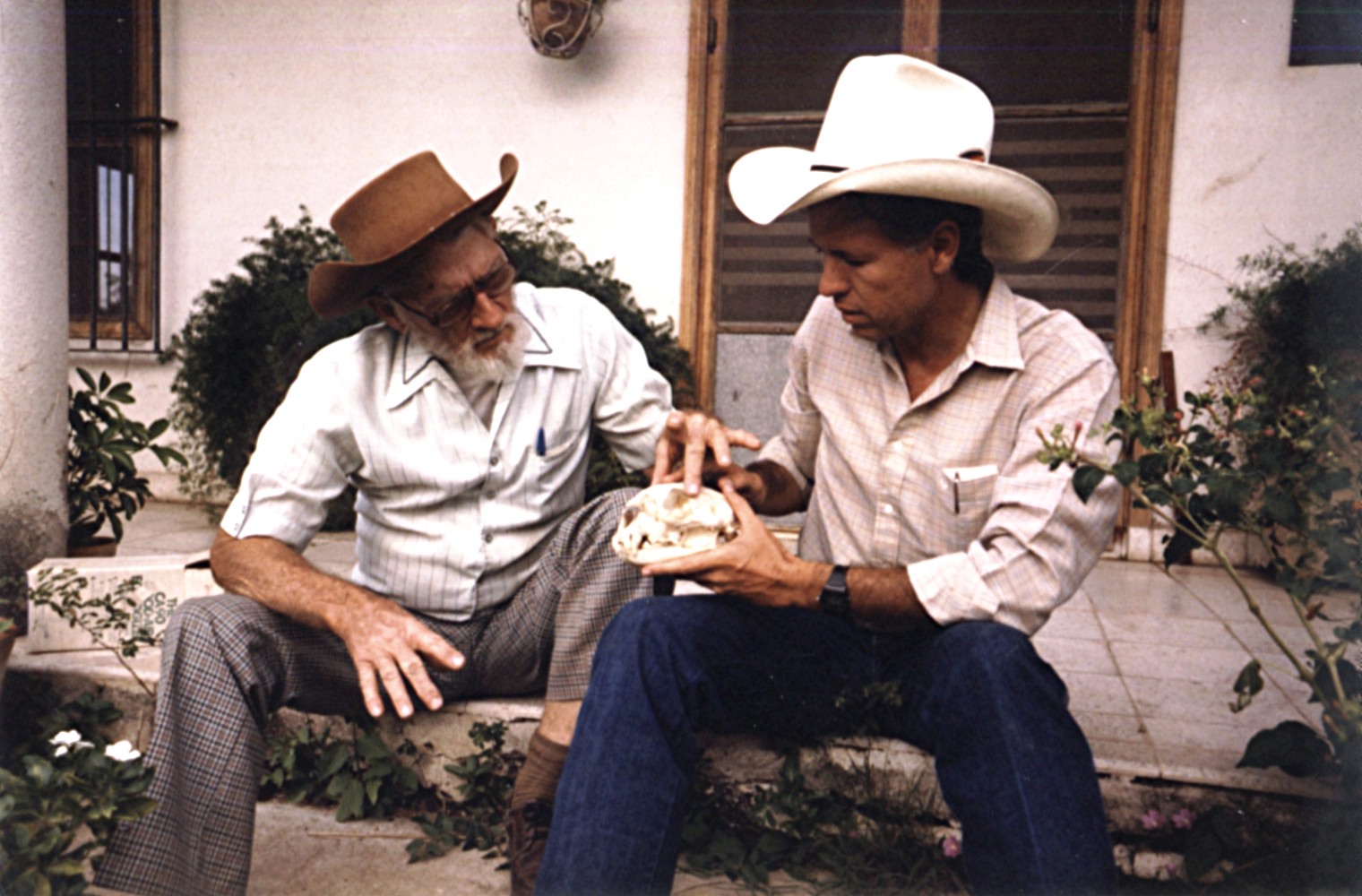 Robert E. Marshall and Ricardo Urquijo with the Vega onza skull (© International Society of Cryptozoology – permission to reproduce in my writings granted to me in perpetuity by J. Richard Greenwell, ISC Secretary)Additionally, another onza investigator, Arizona hunter Robert E. Marshall was successful in obtaining the incomplete skull (its lower jaw was missing) of an onza shot during the 1950s at Los Frailes, Sinaloa. Marshall was also the author of The Onza – published in 1961, it was the first book devoted to this cryptid; a second, Onza! The Hunt For a Legendary Cat, written by Neil B. Carmony, was published in 1995. Both make fascinating reading, and I highly recommend them to anyone interested in cryptozoology.