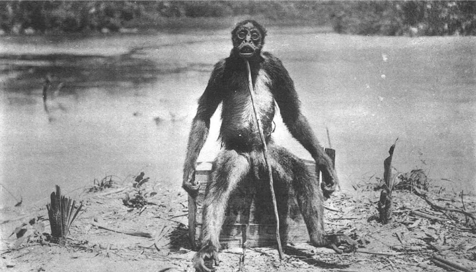 Could there be a 'lost' Ameranthropoides loysi photograph out there somewhere, awaiting rediscovery and looking something like this? (original photograph © Attilio Gatti, utilised here on a strictly non-commercial, educational Fair Use basis only; photo-manipulation © Dr Karl Shuker)Earlier this year, I posted here on ShukerNature an extensive two-part article of mine concerning Ameranthropoides loysi, the supposed bipedal, tailless ape encountered and shot dead in the Venezuelan jungle in 1920 by a team of geologists led by Dr François de Loys, but whose carcase was subsequently propped upright on a crate in a sitting position and photographed – the resulting picture becoming one of the most iconic but contentious images in the entire annals of cryptozoology, and which was finally, conclusively exposed as a blatant hoax earlier this present century. To read my article on ShukerNature, please click here for Part 1 and here for Part 2.