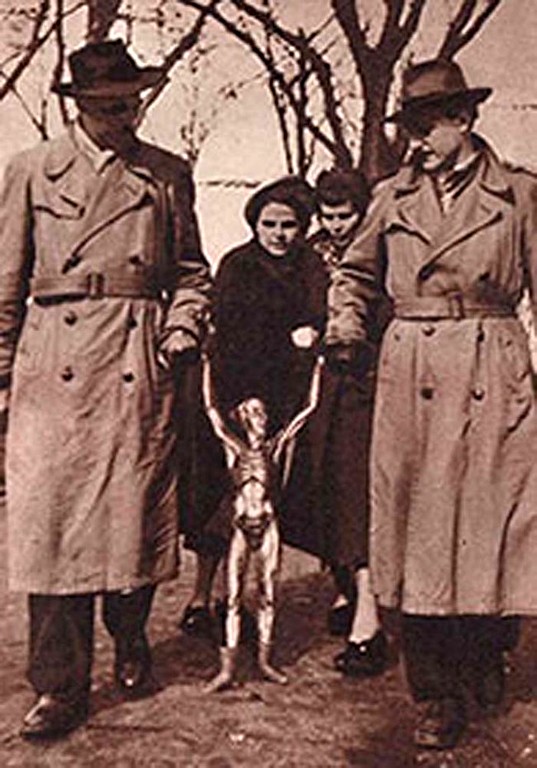 The above-mentioned hoax 'alien' photograph published on 1 April 1950 by Neue Illustrierte (© Neue Illustrierte – reproduced here on a strictly non-commercial, educational Fair Use basis only)Could a distant, confused or mis-remembered memory of one such photograph explain why my correspondents believe that they have seen a second, currently unknown photo of Ameranthropoides? An intriguing variation on this theme was proffered by Argentinian biologist Mariano Moldes in a letter to me of 2 February 1998. Discounting the false memory scenario, he suggested that what may have happened is as follows: