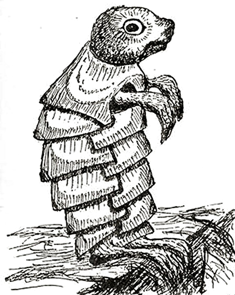 Lewis Carroll's decidedly odd-looking drawing of the Mock Turtle, from Alice's Adventures Under Ground (public domain)In Tenniel's drawings, the Gryphon was depicted in typical griffin form, as a composite of eagle and lion, deftly amalgamating the beaked head, taloned forelimbs, and plumed wings of the former with the furry body, clawed hind limbs, and long tuft-tipped tail of the latter. Conversely, whereas the Mock Turtle also appeared to be a composite creature, it did not resemble anything known to me from either fable or fact. Nor had I even heard of a mock turtle before. Evidently, therefore, I reasoned, unless it were an exceedingly obscure mythical beast it must have been one of Carroll's own inventions, but what had inspired him to fashion it in the extraordinary form that he had done, and where had its very distinctive, memorable name originated? These were the two questions that puzzled me for so long (back in those now far-distant days before the information super-highway of the internet had come into being!).