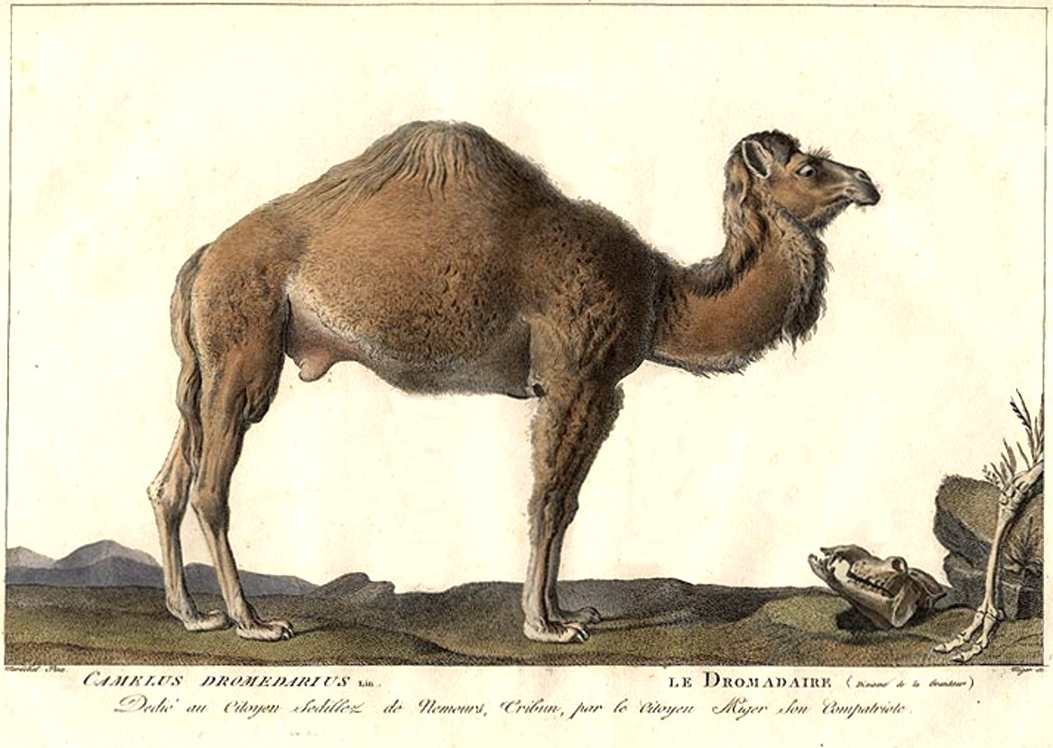Early restoration of Aepycamelus the giraffe camel by Heinrich Harder in 1920 (public domain)Today, however, this once-mighty and extremely diverse dynasty is reduced to just six representatives – the two species of humped camel (one-humped dromedary Camelus dromedarius and two-humped Bactrian C. bactrianus) native to Asia (plus feral populations variously established in parts of Europe and Australia); and the four humpless species native to South America. These latter four species are the vicuna, alpaca, llama, and guanaco.