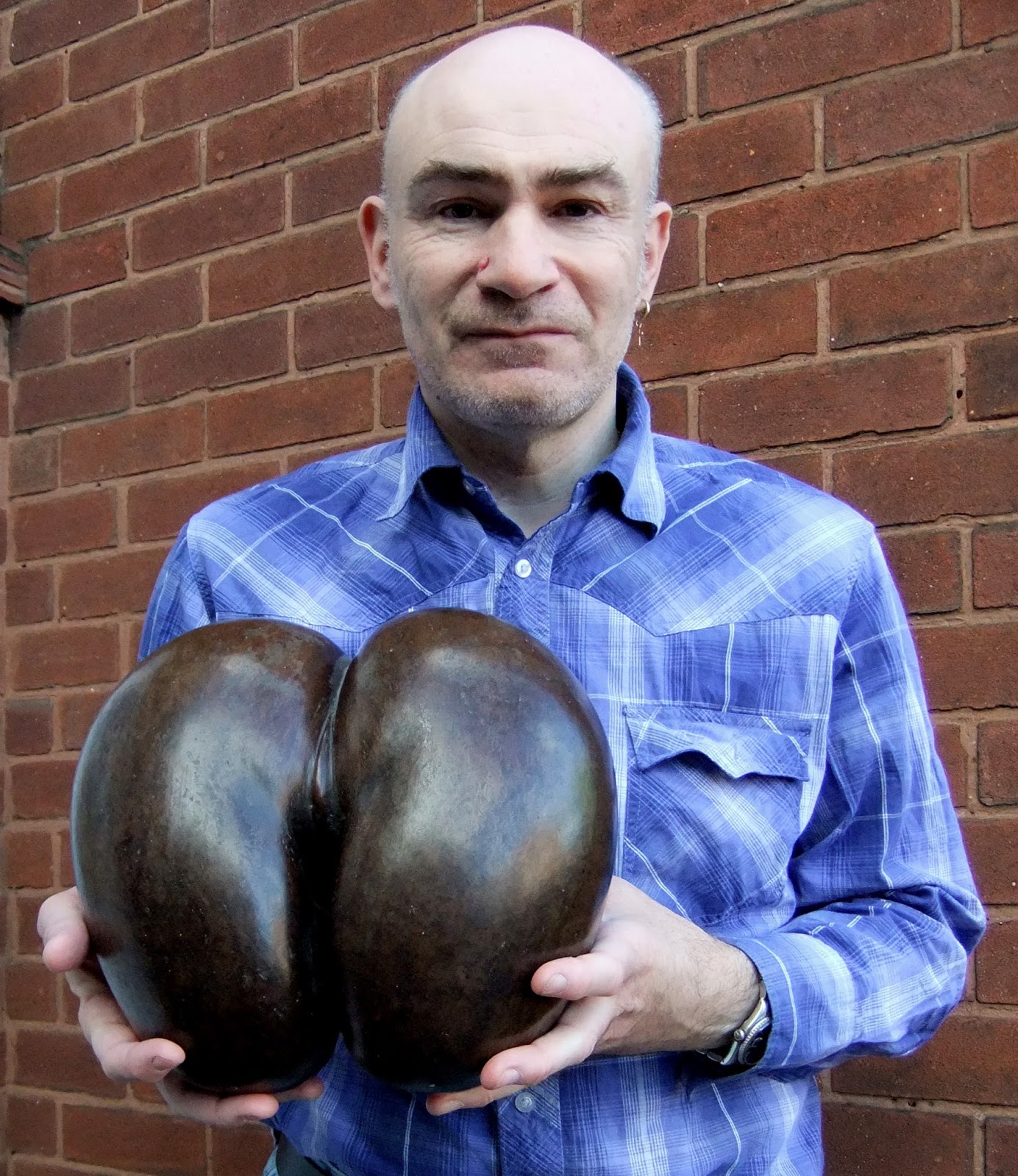 A bilobed de-husked hollow nut or double coconut of the coco-de-mer tree (© Dr Karl Shuker)The Seychelles first became known to the West via Portuguese explorer Vasco de Gama's recorded sighting of these islands in 1502, and the coco-de-mer tree itself was formally discovered in 1768 by a French engineer named Barré, who was sent to explore Praslin following France's acquisition of this archipelago during the 1740s. Long before these events, however, this tree's spectacular seed was already well known to fishermen in such diverse localities as the Maldives, South Africa, Sri Lanka, Indonesia, and India. This is because hollow, internally-rotted specimens were sometimes carried by the sea from the Seychelles to the shores of these and other countries with Indian Ocean coastlines. Indeed, it was the finding of such seeds around the Maldives that led to the mistaken belief among some early naturalists that the tree which produced them must exist somewhere here, thus earning it the maldivica portion of its binomial taxonomic name.