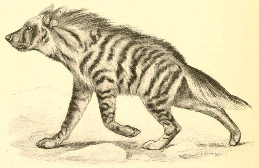 Normal striped hyaena, sketch from 1902 (public domain)Could it be, therefore, that the naked desert hyaena was based upon some freak, near-hairless individuals, yielding a local non-taxonomic variety? Or (as a less plausible but more zoologically-intriguing alternative option) did it constitute a discrete race, distinct from the typical Nubian striped hyaena, which may have bred true? If the latter were correct, then the naked desert hyaena would surely have represented a valid subspecies in its own right.