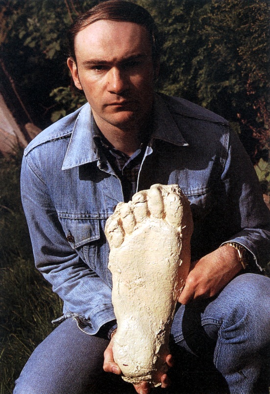 Holding a bigfoot footprint cast obtained in Washington State, 1982 (Dr Karl Shuker)