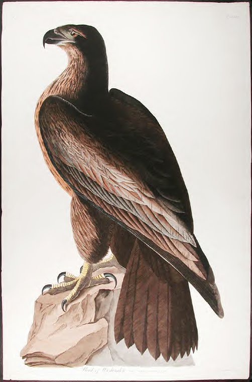 As for Audubon being mistaken about the bird’s size: when creating his spectacular, painstakingly-detailed life-size paintings of birds, Audubon used a complex double grid system to guarantee precision of dimensions, with one grid placed directly behind the mount and an identical one for his folio, thereby corresponding the respective shape and size of subject and image exactly. So unless he deliberately misrepresented his Washington’s eagle’s dimensions (and there seems no good reason why he would do this, as this would inevitably compromise the scientific worth of all of his other bird paintings), we must assume that its mighty size was genuine.