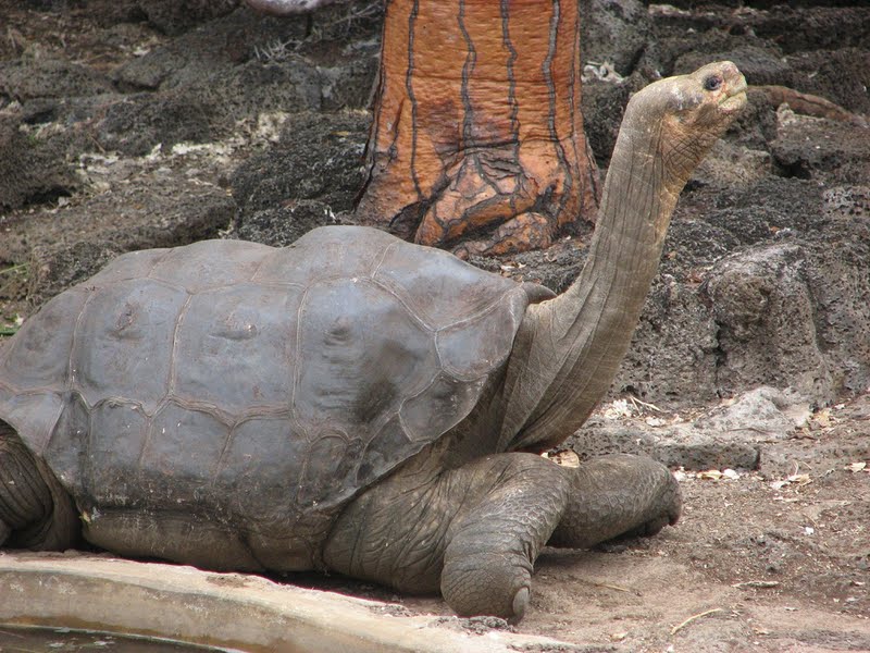 An Abingdon (Pinta) Island giant tortoise exhibited at London Zoo in 1914Nevertheless, it was resurrected in March 1972, for this was when - to the astonishment of herpetologists everywhere - a living specimen was encountered on Abingdon. Furthermore, tracks indicating the presence of others were also sighted. The live tortoise, a male (later christened Lonesome George), was swiftly transferred to the Charles Darwin Research Station on Santa Cruz for security. Still alive today (August 2011), George is believed to be 60-90 years old and in good health, but attempts to mate him with females of other Galapagos subspecies in order to preserve his genes in future generations of hybrids has so far proven unsuccessful.