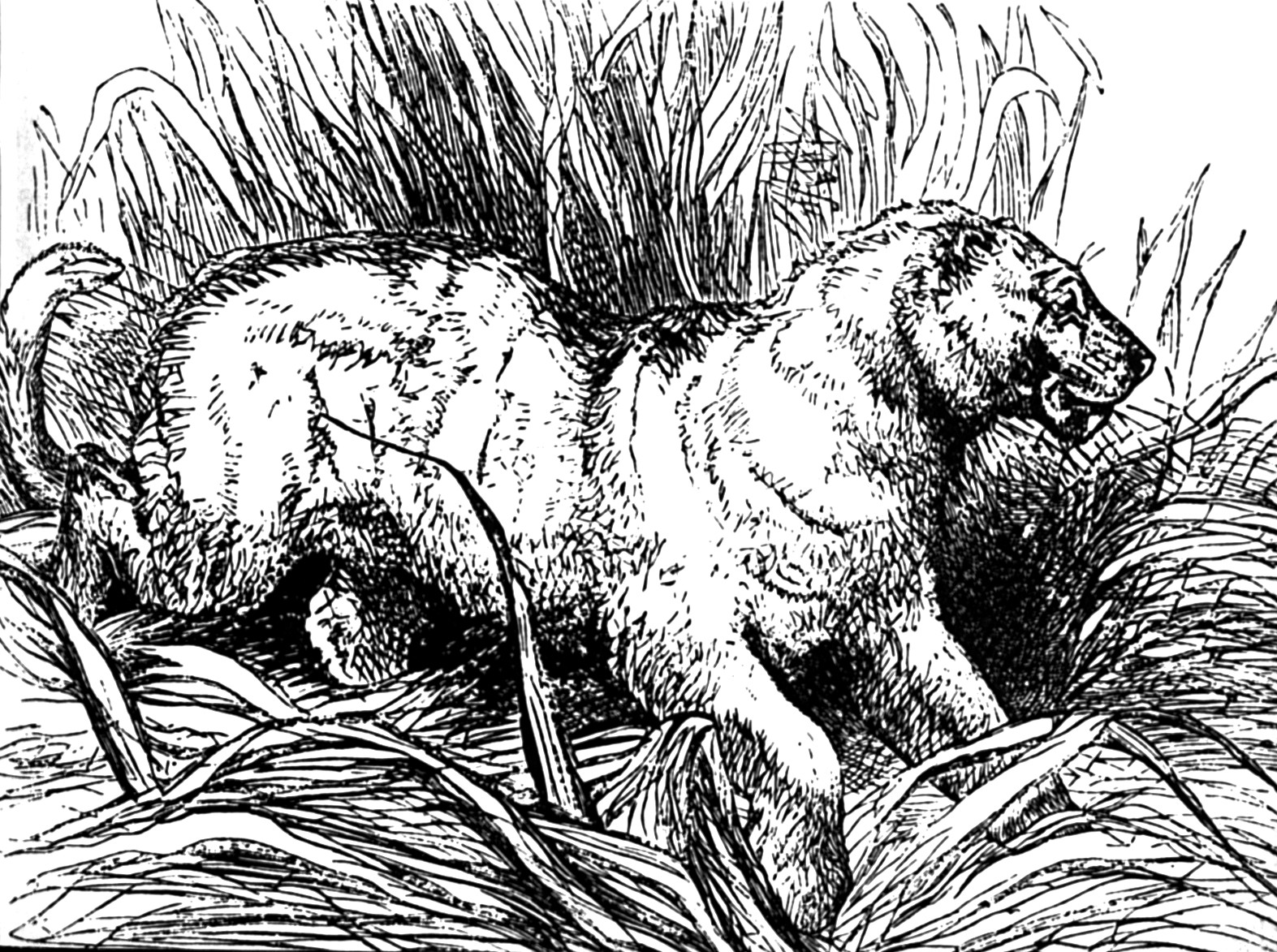 Lurking at dusk in woods, cellars, barns, or even an uninspected loft, or crouched behind neglected rubbish dumps, sometimes only the catipoce's horn-humped back is visible – until some unwary person treads close enough to witness this foul felid's rapacious grin: