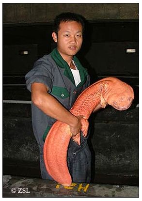 Since writing the above section in 1995, I have encountered a number of photographs, such as those included here, which confirm that pink giant salamanders can and do exist. True, these are of the Chinese species (which, as Dr Darren Naish noted here in a Tetrapod Zoology post for 3 December 2010 on these amphibians, is more variable morphologically than is often realised), but their existence substantiates the likelihood that pink hellbenders, for the reasons already presented here, could also arise.