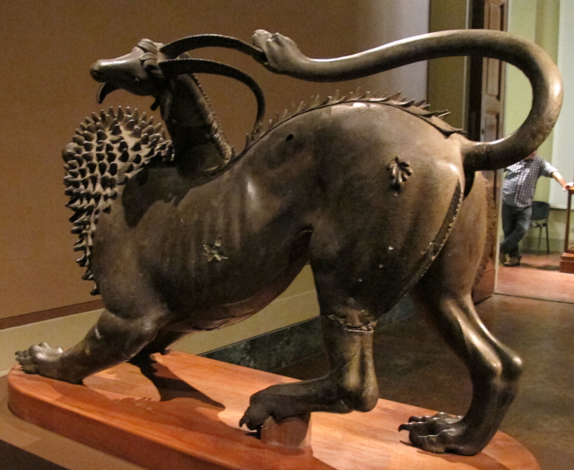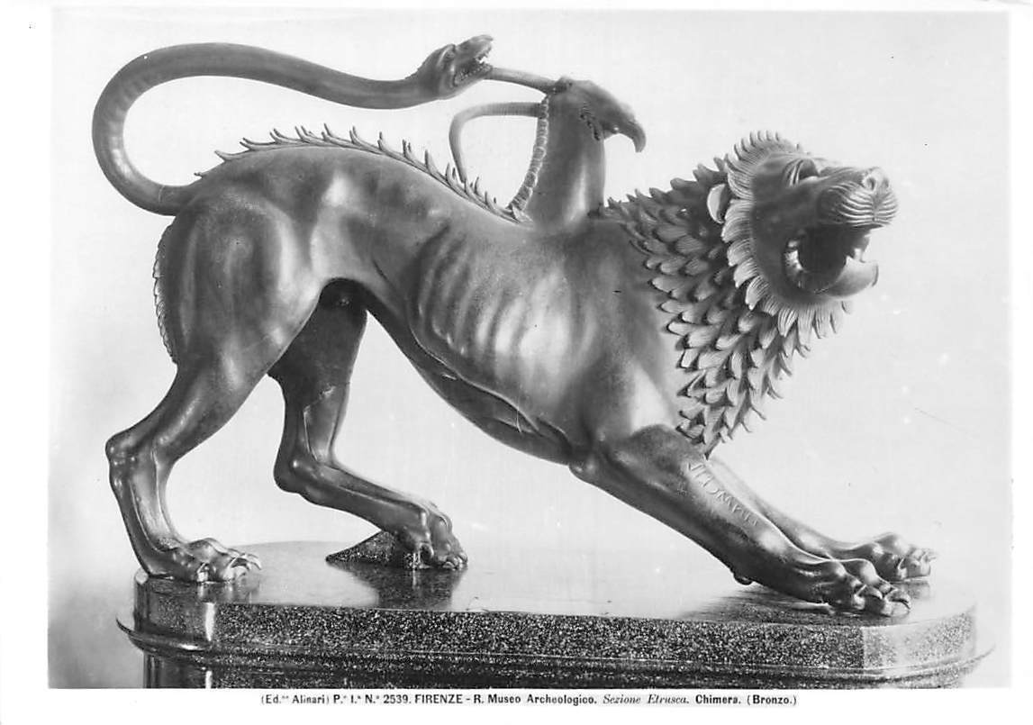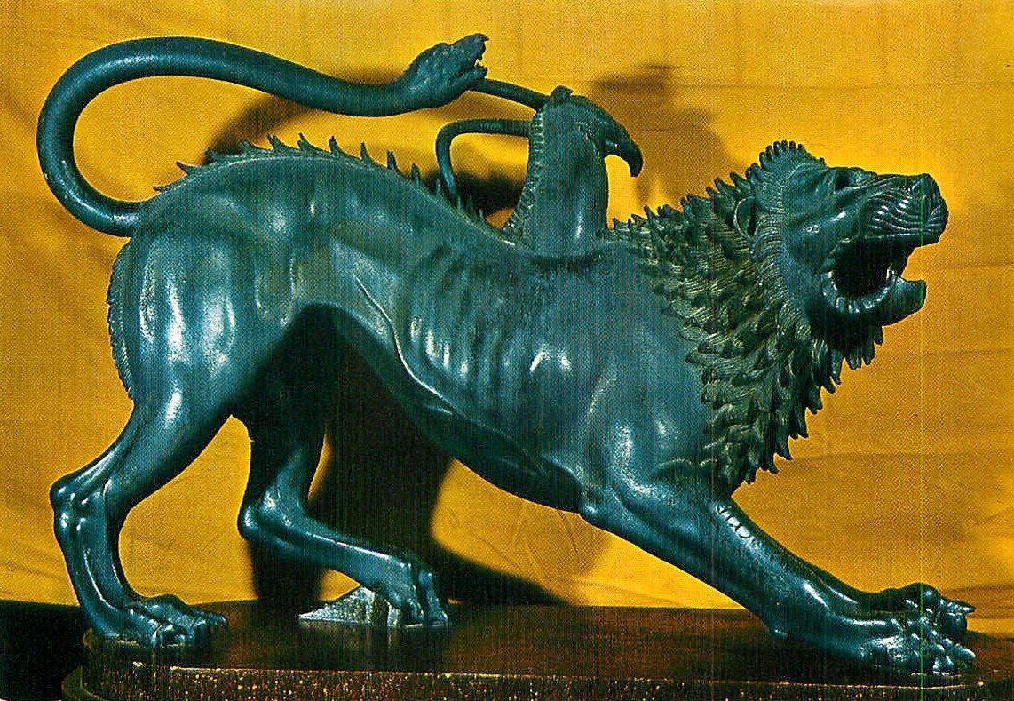 Back now to my afore-mentioned Larousse-published encyclopaedia of art, and the photograph that I had seen in it was of a bronze statue of the chimaera, which had been unearthed by construction workers on 15 November 1553 at Arezzo, an ancient Etruscan and Roman city in Tuscany, Italy, and which dated back to approximately 400 BC.
