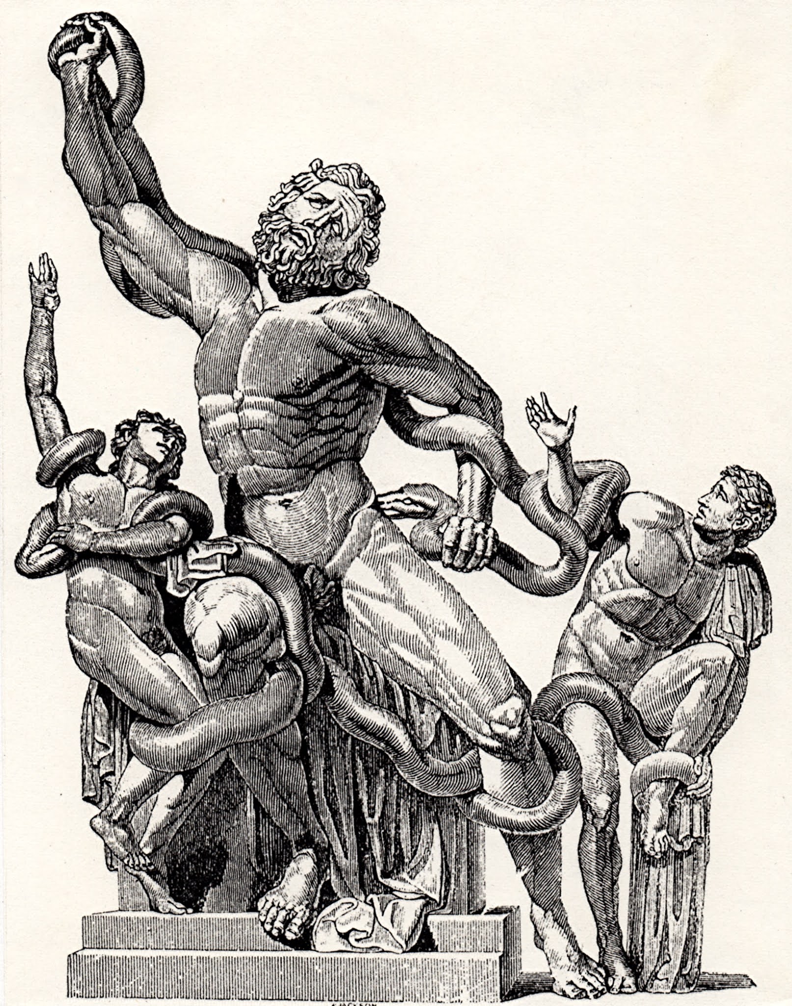 Or: A Trojan priest of Poseidon who desecrated his temple by indulging in sexual intercourse within its perimeter, so as a punishment Poseidon sent forth two great serpents of the sea across the waves to kill him and his sons.