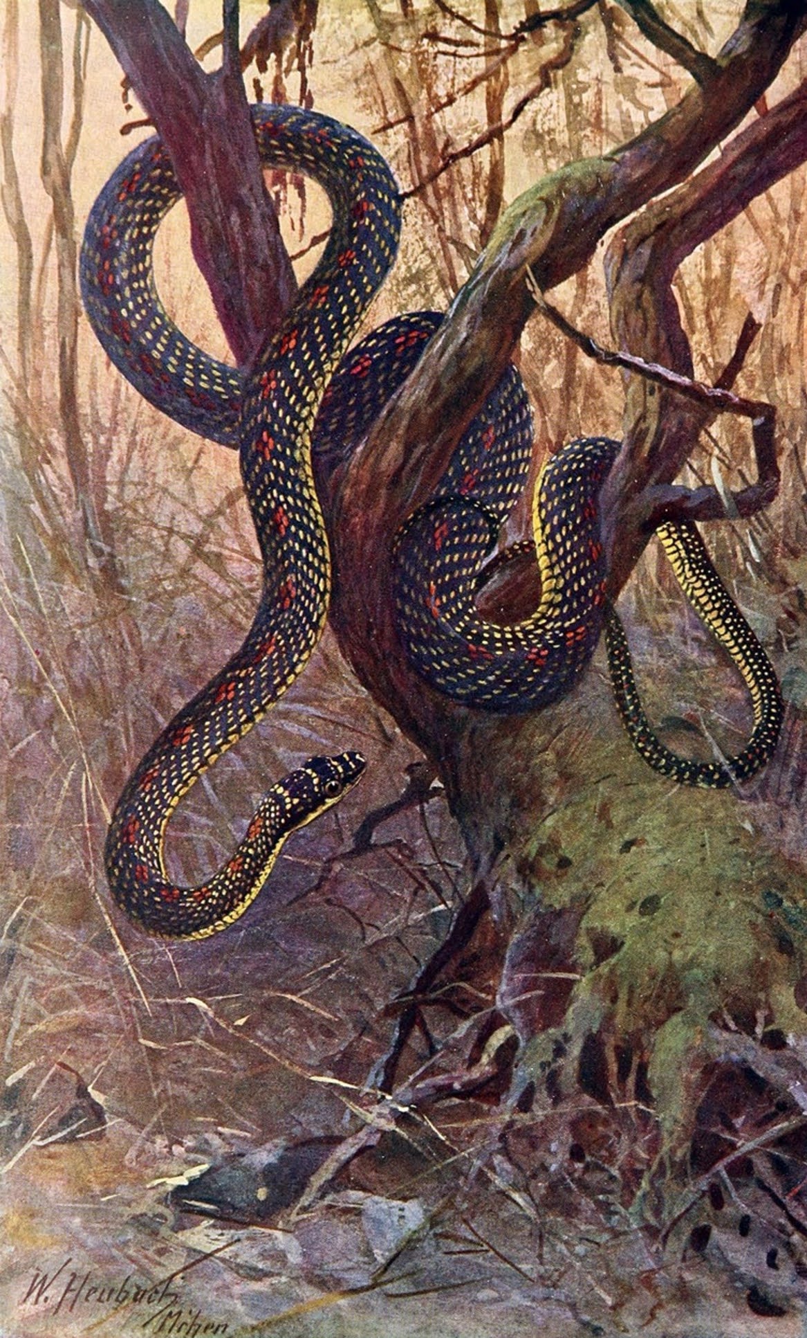 A western prototype [i.e. of Chrysopelea ornata] is reputed to exist somewhere in Southern Mexico, although snake experts have made many fruitless expeditions into the interior for living specimens.