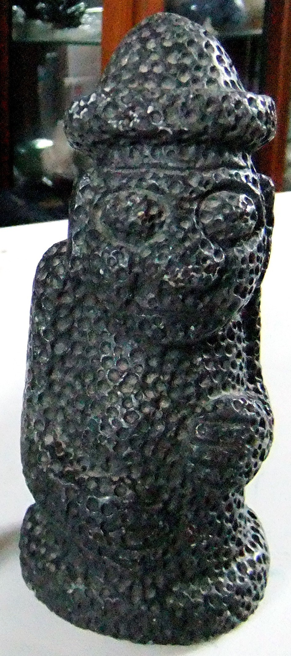So it was with the enigmatic little statuette whose photograph opens this present ShukerNature article of mine, and which I purchased at least 15 years ago at a charity shop in the English city of Wolverhampton. Standing just a few inches tall, it is made of black stone and is surprisingly heavy for its small size, with a very distinctive multi-dimpled surface, long ears (somewhat like Easter Island's giant moai), and very large bulging eyes.