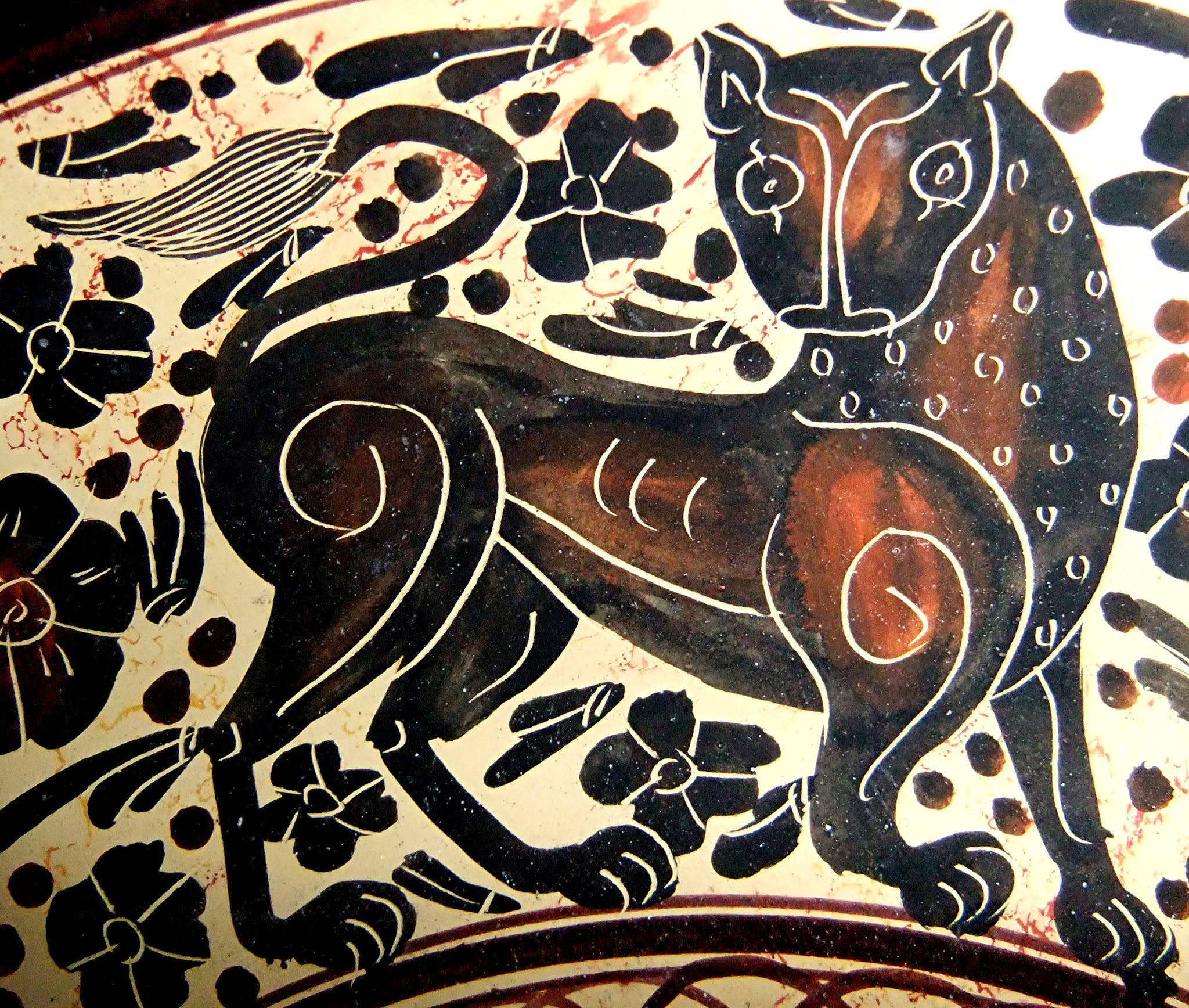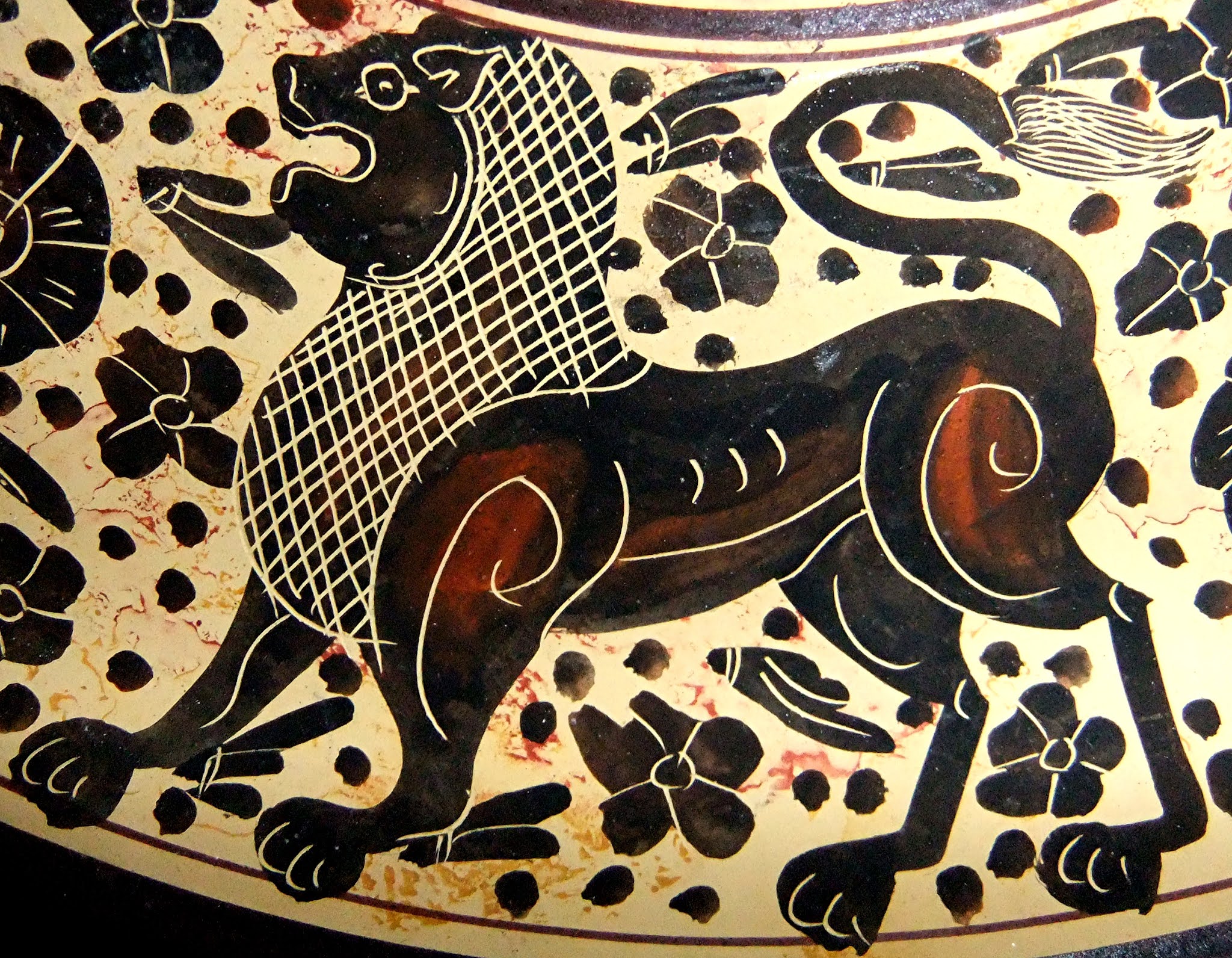 And a day later it remains very mystifying, because despite having given the matter much thought during the interim period between then and now, I am still unable to offer a plausible identity for this semi-mottled mystery beast. Perhaps it was simply an invention of the artist, a fictitious entity playfully added to the plate's panoply of authentic classical Greek fauna from reality and mythology (back in early times, lions did exist here). Alternatively, might it even be an attempt by him to portray a leopon, a hybrid of lion and leopard? Or could it be some fabled Greek beast unfamiliar to me? I shall continue to investigate this pictured puzzle, but if any ShukerNature reader can offer me any suggestions of their own, I'd greatly welcome receiving them.