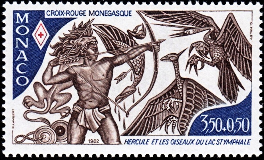 In 1982, Monaco had commemorated the famous Greek legend of Heracles by issuing a series of postage stamps that each illustrated one of his twelve great labours. And among those labours was his slaying of the ferocious lake-dwelling Stymphalian birds, which reputedly possessed long necks and huge wings of brass. Moreover, the three birds depicted on that particular stamp definitely bore a marked resemblance to the tantalizing trio portrayed upon my Greek wall plate.