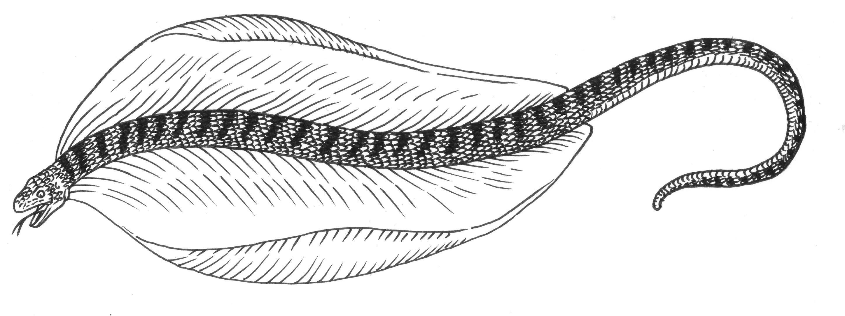 For a number of years, American cryptozoologist Nick Sucik has been investigating reports of an equally mystifying but even more obscure aerial anomaly of the serpentine kind - the tl'iish naat'a'í (pronounced 'kleesh-not-ahee' and translated as 'snake that flies'). Also known as the Arizona flying snake, apparently this bizarre reptile is a familiar creature there to the Navajo Nation, and to the Hopi Nation as well (who refer to it by names translating as 'sun snake'). They all describe it as being fundamentally serpentine in form, generally around 2 m long, and dull grey in colour (although sometimes said to have a red belly), but possessing a pair of retractable and virtually transparent wing-like membranes. These emerge from behind its head, run laterally along much of its body's length, can flap vigorously and very rapidly, and are thus used for active flight (rather than passive gliding) purposes.