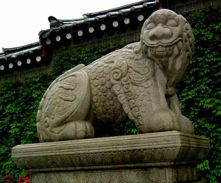 According to ancient Korean tradition, this immensely powerful creature is native to the frontiers of Manchuria and appeared as a city-protecting entity in architectural sculpture during the early Joseon dynasty (the last dynastic kingdom of Korea, lasting for five centuries, from July 1392 to October 1897).