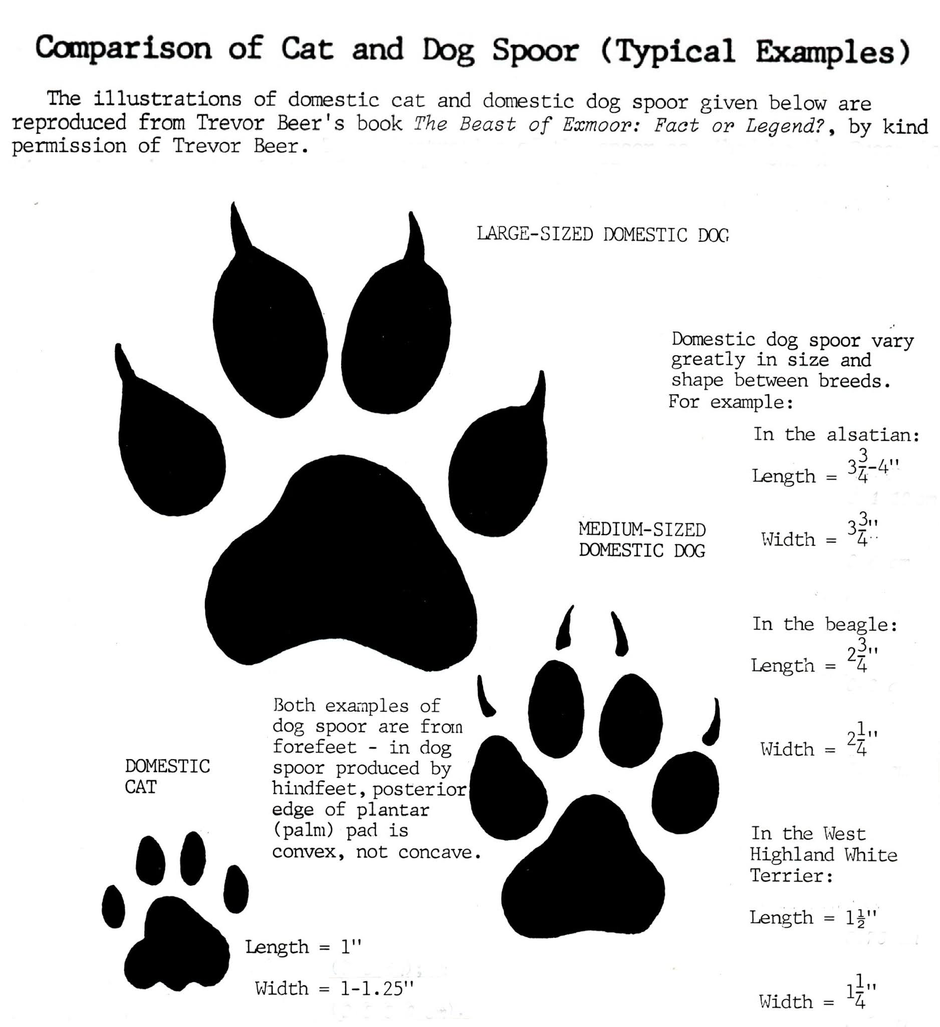 Measuring 4.5 in long and 4 in across, the prints had no claw marks at all, which ostensibly leaned towards a huge cat as an identity. However, when the casts were sent to me, I could see from the shape of the heel pad and the diverging placement of the toe pads that they were in fact dog prints, albeit from a very large and extremely well-manicured dog – so this is what I told the reporters.