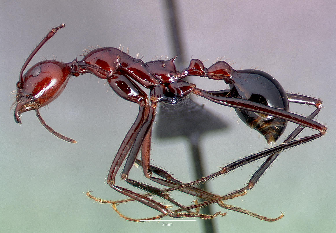 Native to much of the world (sub-Saharan Africa, much of South America, and Antarctica being the only major exceptions), there are approximately 200 species of Aphaenogasterant, which belong to the taxonomic subfamily Myrmicinae, and produce just a single caste of worker. They are famous for their large funnel-shaped nests (more about which later), earning them the common name of funnel ants. In Madagascar, a major predator of these ants is Mocquard's worm snake Madatyphlops decorsei, endemic to this mini-island continent, and formally described by French herpetologist Dr François Mocquard in 1901, who named it in honour of Gaston-Jules Decorse, a French army physician.