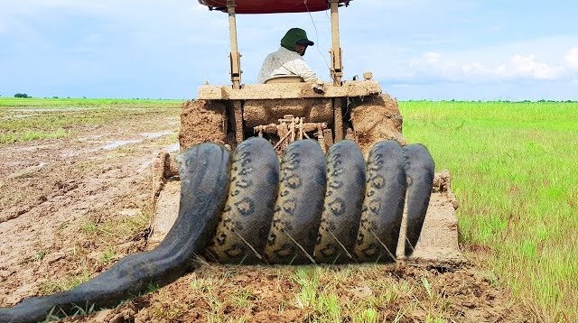 )NB – Before reading any further, please note that ALL of the anaconda-encoiled animal photographs and anaconda-encoiled mechanical device photographs contained in this article are photo-manipulated FAKES (with the sole exception of the anaconda-encoiled white cow photos), so none of the apparent animal 'victims' in these photos were victims (except for the white cow, but it did survive – see later).