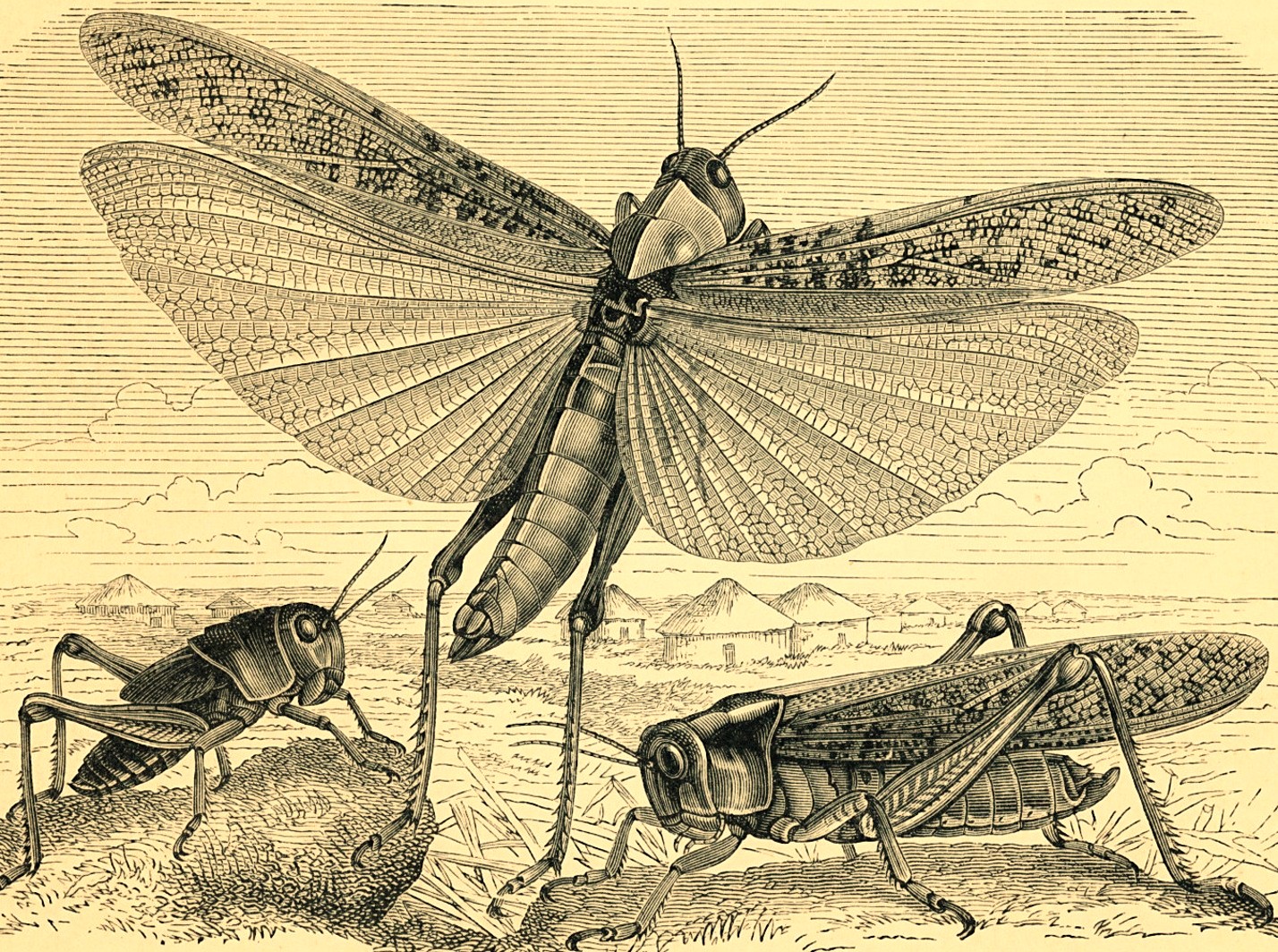 A 19th-Century illustration of locusts (public domain)Even so, this is still odd, because although I have read occasional accounts of veritable swarms of certain hawk moth species occurring in various localities down through the ages, I haven't read anything comparable relating specifically to the deathshead hawk moth. Having said that: in my ShukerNaturearticle on this species (click here ), I do refer to a singular incident in which approximately 300 specimens were attracted to a single beehive within a short period of time. The reason for this was that the deathshead has a great liking for honey, so much so in fact that some researchers have even suggested that its uncanny squeaking ability may actually be an attempt to impersonate the specific sound that a queen bee produces to keep her workers passive, and thence allow the moth to enter the hive and consume its honey without being attacked by the hive's worker bees. Consequently, in exceptional circumstances large numbers of deathsheads may indeed occur. So although I haven't been able as yet to trace any corroboration that is independent of the moth drawing, perhaps one such occurrence took place near Kalisz, Poland, during 1749.