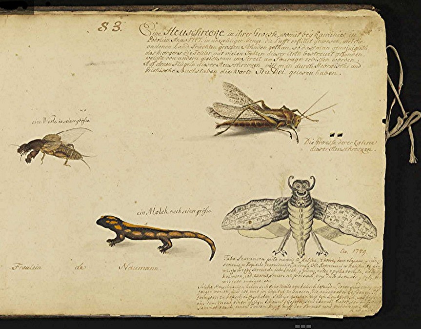 Close-up of the so-called 'Locust of Kalisz' drawing, contained in the scrapbook album compiled and given by friends to General Joachim Daniel von Jauch as a birthday present sometime during the early 1750s (public domain)Its many shortcomings and dark aspects notwithstanding, I have long considered the internet to be the greatest cabinet of curiosities ever assembled, a limitless repository replete with wonders and marvels of every conceivable – and inconceivable – kind, all awaiting uncovering and investigation by those with a mind to do so. Over the years, I have documented here on ShukerNature an extremely diverse array of my own cryptozoology-related discoveries made in this manner, of which the present one is just the latest in a very extensive and – at least for me, but I hope for you too – a thoroughly entrancing series with no end in sight, thankfully.