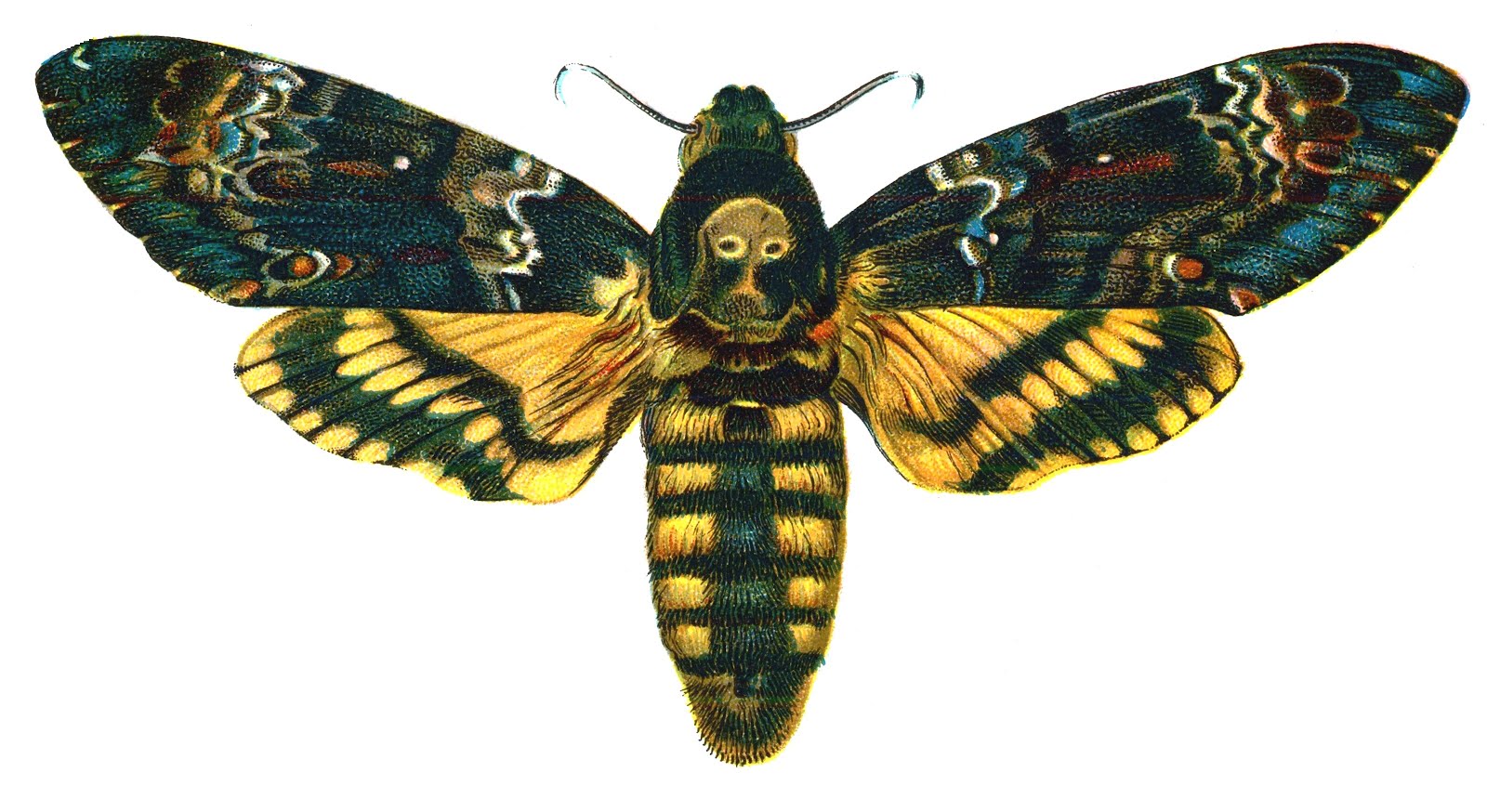 True, the characteristic thoracic marking resembling a skull and earning this particular moth its familiar English name was depicted ventrally rather than dorsally in this strange drawing, and in it the insect had been given a grinning human face sporting a decidedly Salvador Dali-esque upward-curving moustache, but this latter feature may have been intended as a whimsical adaptation of the moth's long thick antennae. Indeed, in overall appearance the depicted insect definitely seems to constitute a deliberately comical, humanoid caricature of A. atropos, which would explain why it was only given two legs (but ending in claws, like a moth's, rather than human feet), yet incorporating certain unequivocally Acherontian attributes too, such as the banding upon its rear wings, and its hairy body. Of particular relevance here is that the creature's alleged bat-like screaming – ostensibly nonsensical in relation to a moth – is actually a famous, characteristic feature of this particular moth species For it can emit a shrill, high-pitched squeaking sound, which is created by the moth's powerful inhalation of air into its pharynx, causing a stiffened flap called the epipharynx to vibrate very rapidly (click here for more details).