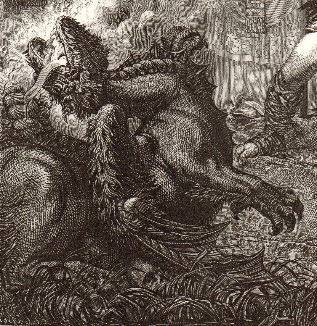 Vintage line drawing of a dragonesque gargoyle (public domain)From a strictly cryptozoological viewpoint, I can't help but wonder whether this legend was inspired at least in part, perhaps, by sightings of some cetacean such as a dolphin or small whale that may have conceivably found its way from the sea into the Seine, where such a creature, spurting forth from its blow-hole(s), would undoubtedly have attracted attention and possibly not a little wonder and fear from observers not previously familiar with such a beast. Alternatively, the entire legend may have been created specifically to enhance the standing of St Romain - as exemplified by those associated with St George and St Martha, it is by no means unknown for monster-featuring stories to be linked to saints, in which the latter confronts and conquers the monster, as a potent allegory of good vanquishing evil.