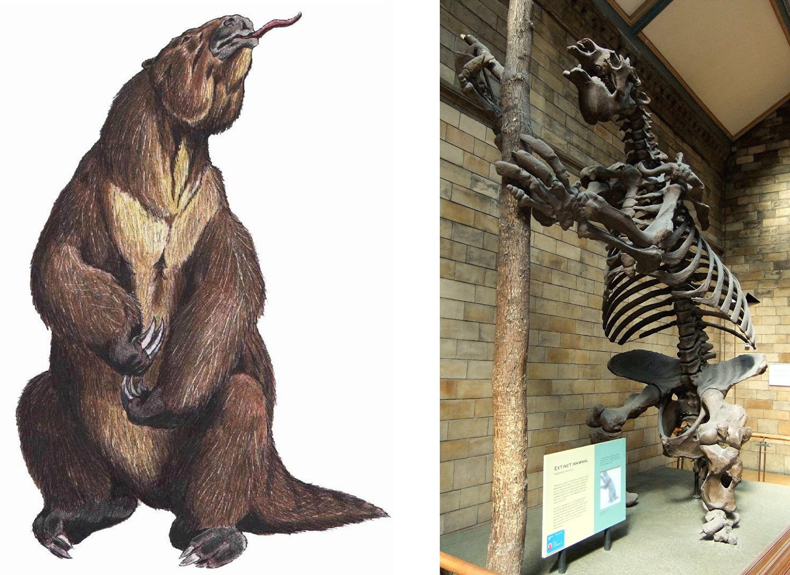 Reconstruction of the giant ground sloth Megatherium (public domain) alongside a fossil skeleton of it at London's Natural History Museum (© Dr Karl Shuker)Kerr duly presented this unique fang to the Hunterian Museum of the University of Glasgow, and in 1933 a cast of it was displayed alongside a label stating that Bothrodonmay have fed upon cumbersome plains-dwelling creatures such as the giant ground sloth Megatherium.