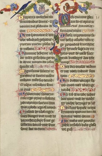 One of the most ornate examples is the Sankt Florian Psalter, also known as the Saint Florian Psalter or the Psalterium Trilingue. It was written between the late 14th and early 15thCenturies, and its text is presented in three different languages – Latin, Polish, and German (the Polish version contains the earliest presentation of the psalms in Polish). It was first discovered in 1827, by local librarian Father Josef Chmel, at the St Florian monastery of Sankt Florian – the Austrian town after which this psalter is named – and is currently held as a priceless religious and iconographical treasure at the National Library of Poland, in Warsaw.