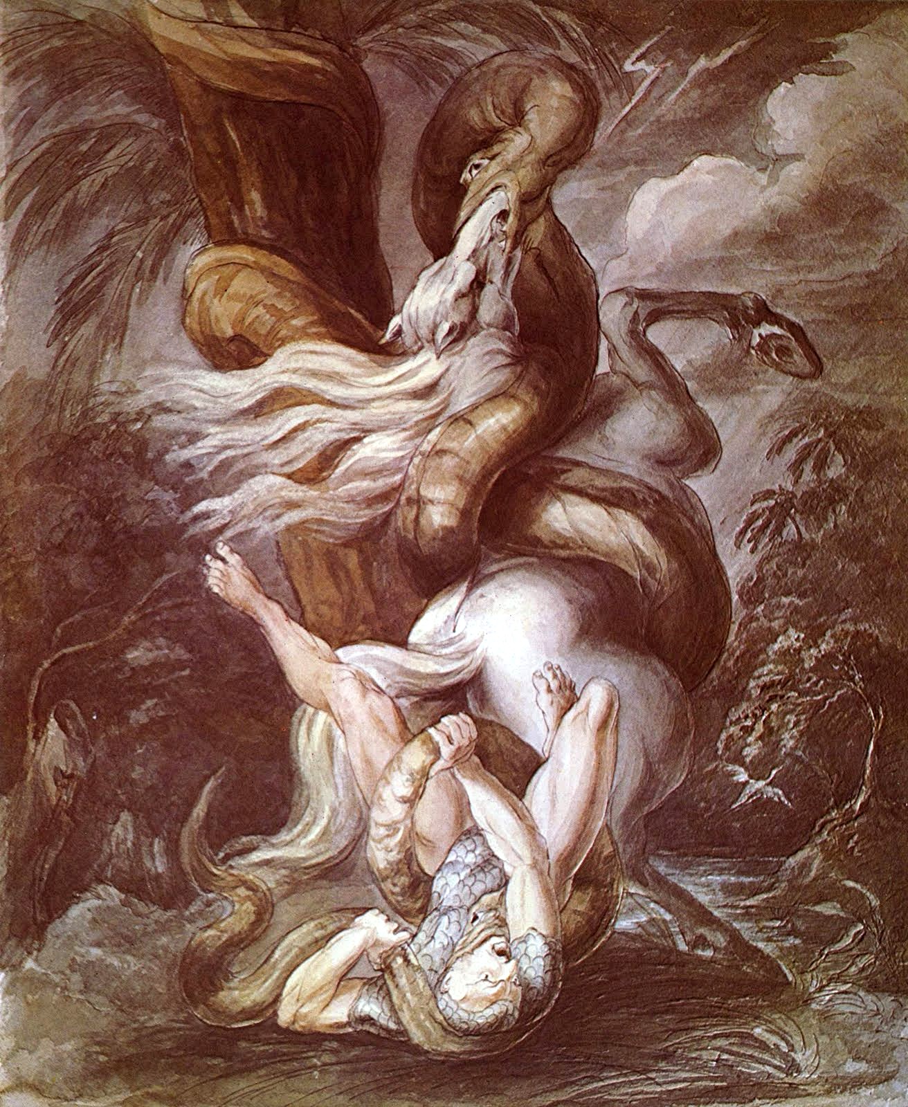 After surveying its surroundings for a few moments, the great monster opened its mouth - and from the depths of its throat a tremendous jet of water sprang forth, engulfing the countryside, on every side, in an immense wave like an inexplicably-displaced oceanic tide.