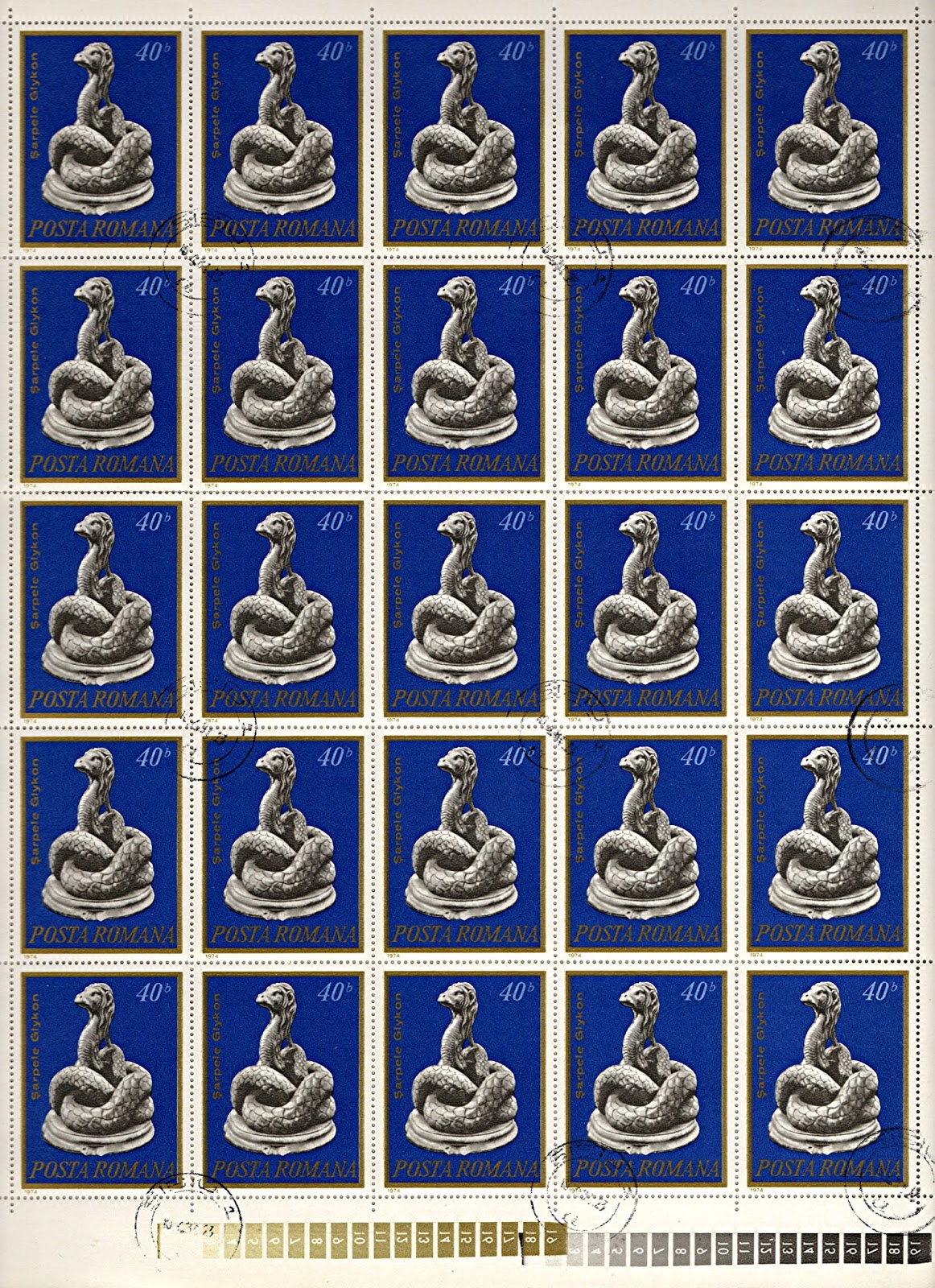 A sheet of Romania's Glycon-depicting postage stamp issued in 1974, from my own philatelic collection (public domain) In 166 AD, Alexander provided an oracle verse that was utilised as an amulet and inscribed above the doors of numerous houses throughout the Roman Empire in the hope of warding off the devastating Antonine Plague that had been introduced into the Empire by troops returning home from campaigns in the Near East, and which killed thousands of people every day. Not surprisingly, the amulets had no effect (indeed, it was actually claimed by critics of this futile course of action that households bearing an amulet suffered more plague-induced deaths than those not bearing it!), but Alexander was too powerful by then for his standing to be affected by any such dissension.